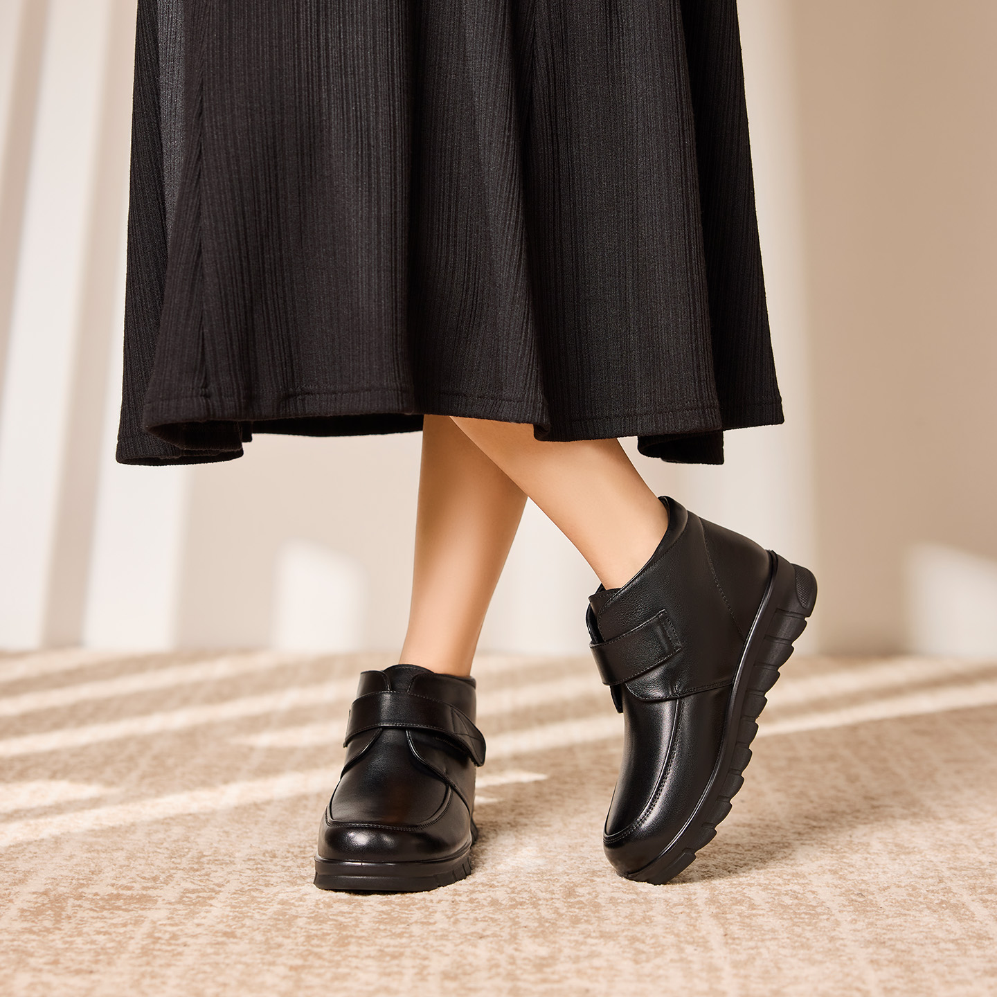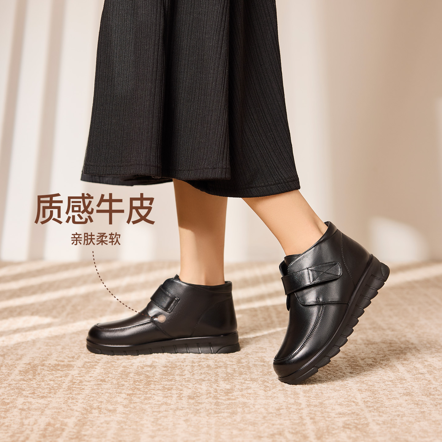 奥康 女鞋2025冬季时装靴真皮加绒黑科技双重保暖魔术贴妈妈短靴