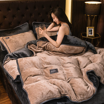 牛奶绒珊瑚绒四件套冬季加厚保暖法兰绒被套双面绒纯色法莱绒加绒