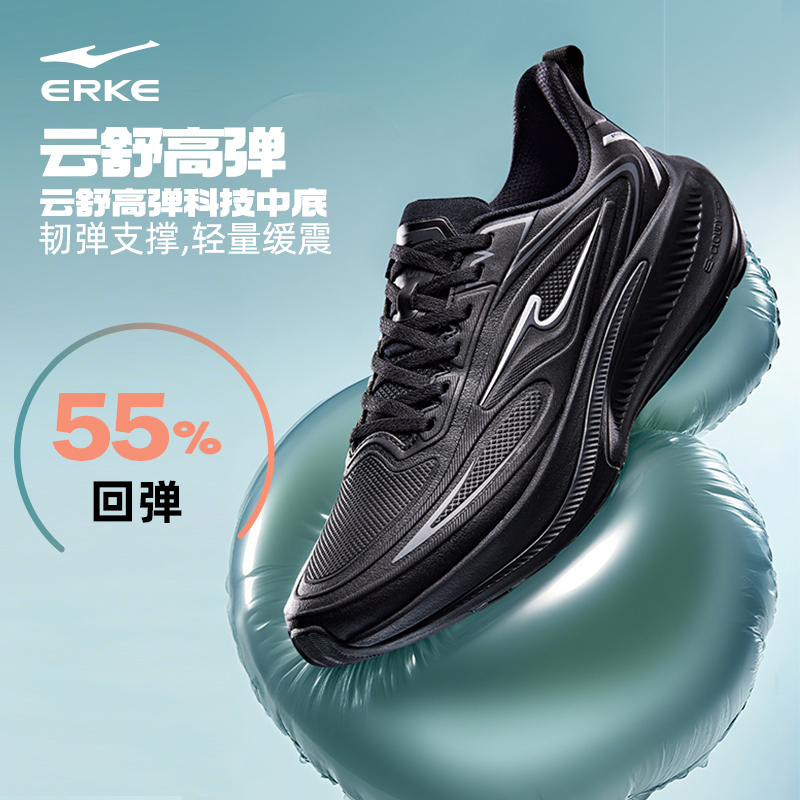 穿梭4ST鸿星尔克运动鞋防泼水跑步鞋秋季新款男鞋减震跑鞋黑鞋子