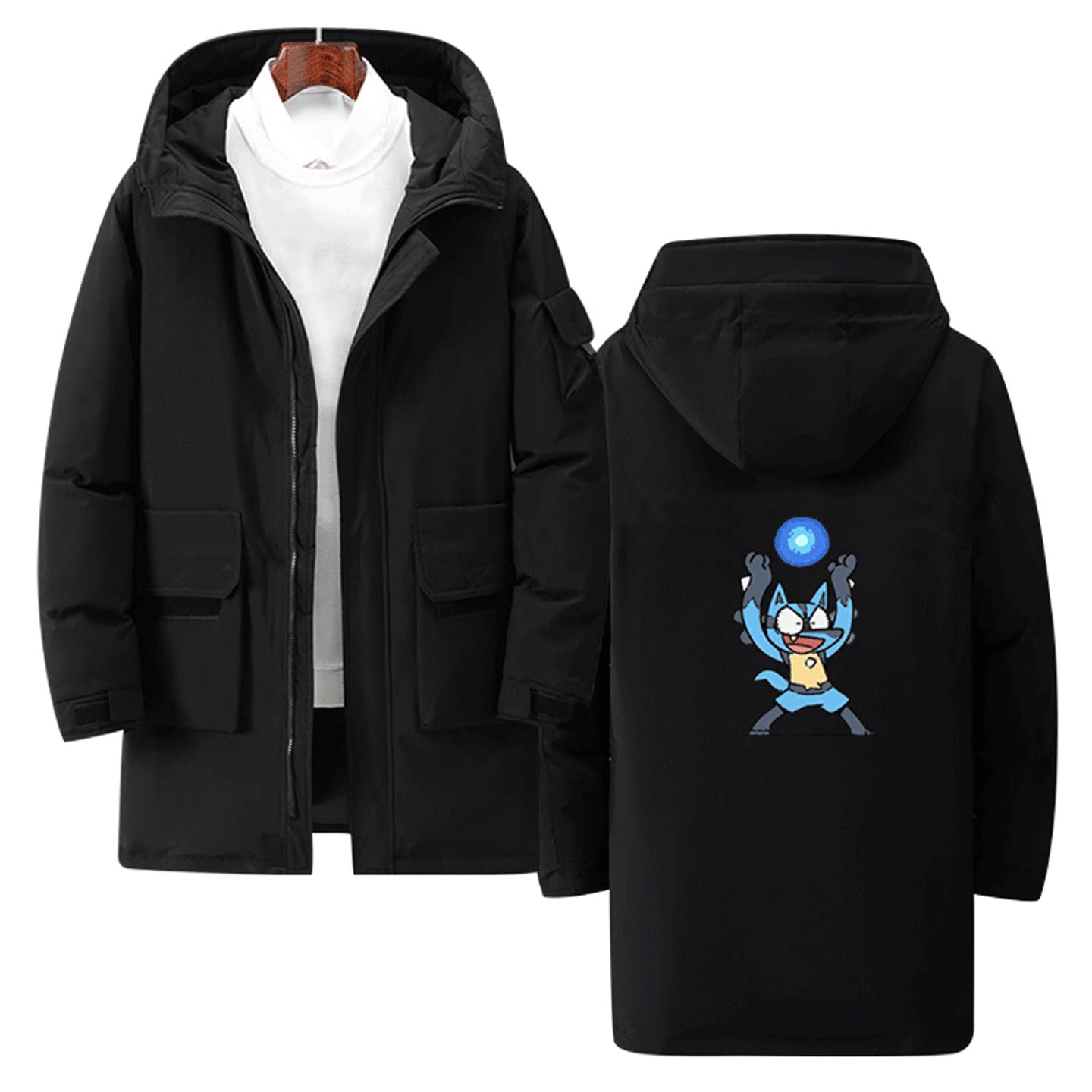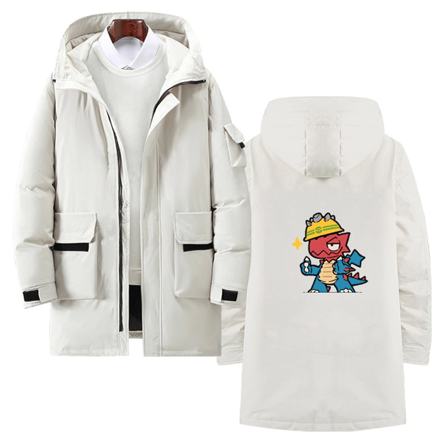 宝可梦联名喷火龙皮卡丘男女可定制中长款羽绒服神奇宝贝卡通周边