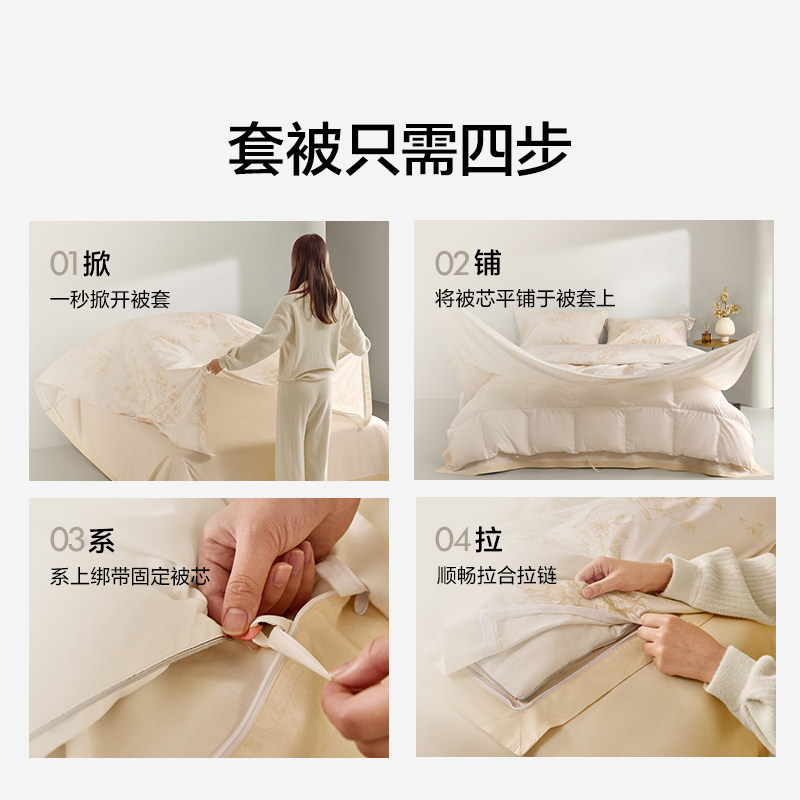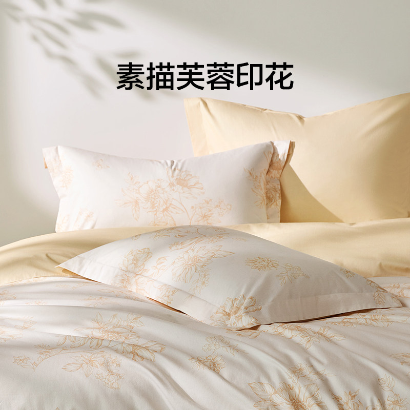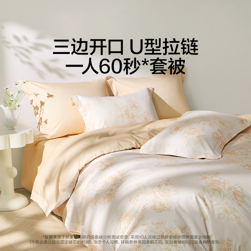 罗莱生活LOVO全棉纯棉四件套被套花卉床单U拉链单双人床60s秒套被