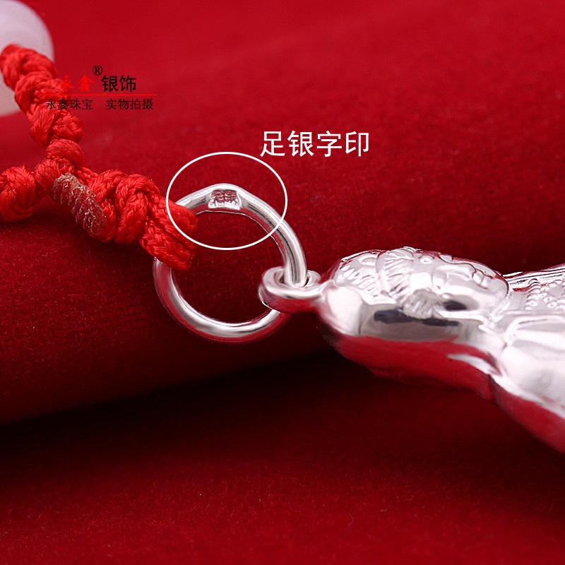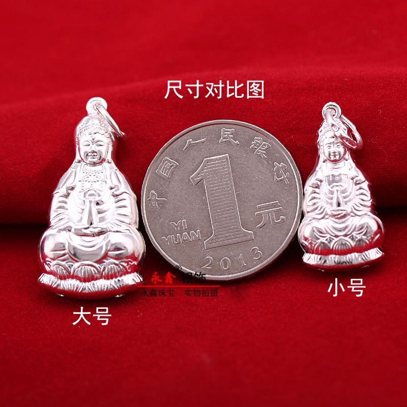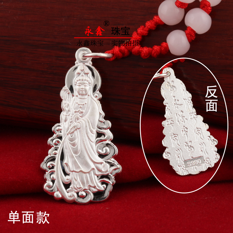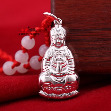 999纯银观音吊坠项链足银男士款银观音牌宝宝红绳项坠保平安首饰