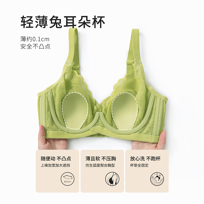 都市丽人大胸显小软胶圈兔耳杯超薄款夏季透气文胸内衣女防凸点