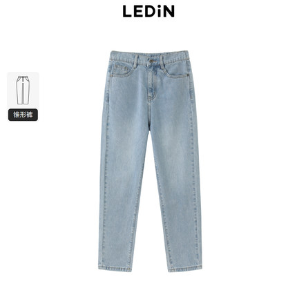 乐町松紧腰牛仔锥形裤2024年新款裤子C2HAE2B01