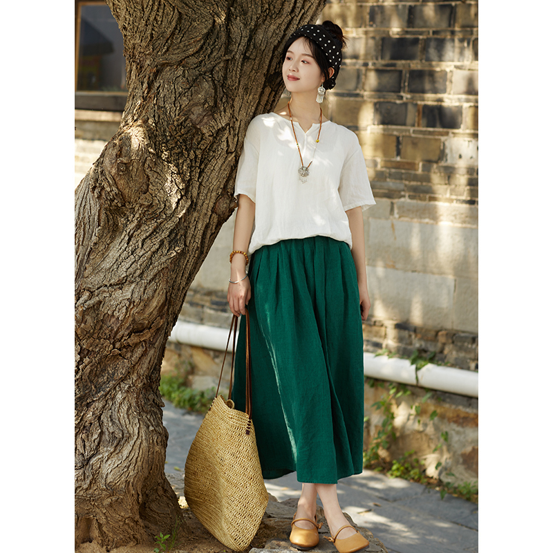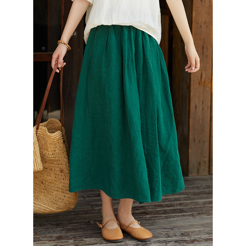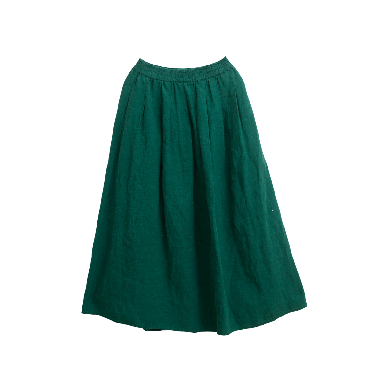 忘城N785座/森绿/夏季新款21支色织亚麻显瘦遮肉a字半身裙中长款