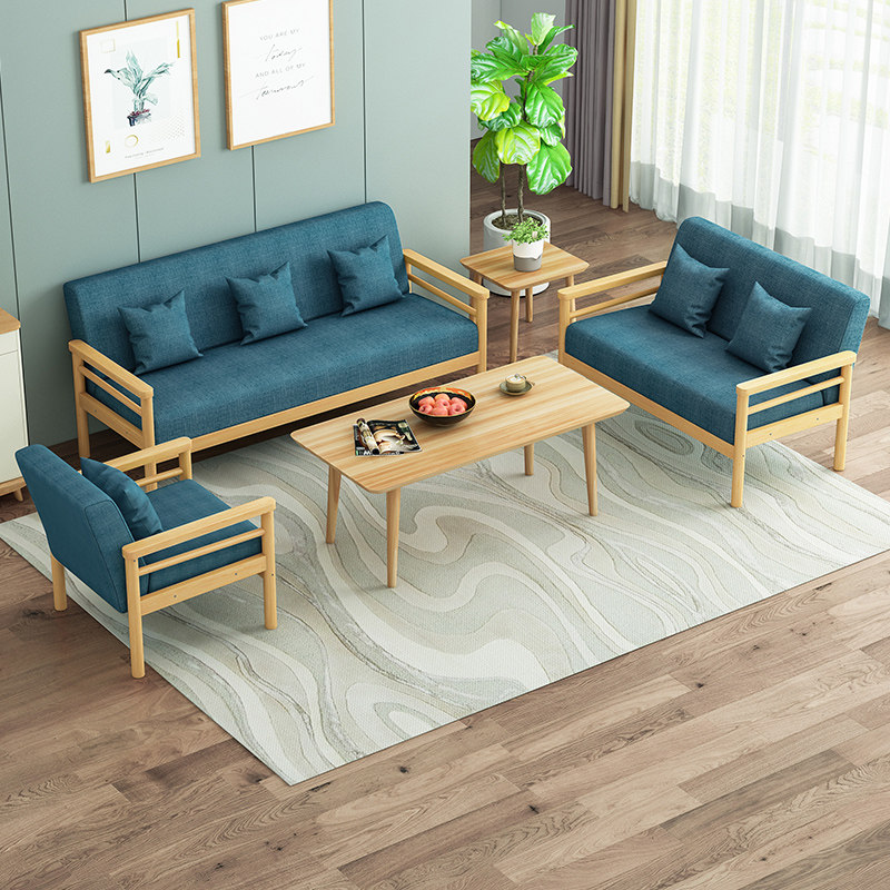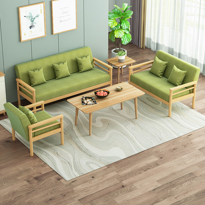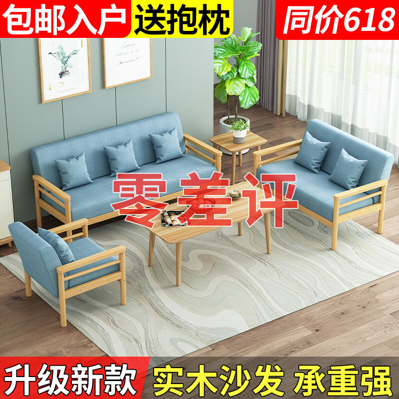实木沙发茶几小户型现代布艺三人位出租房客厅办公椅