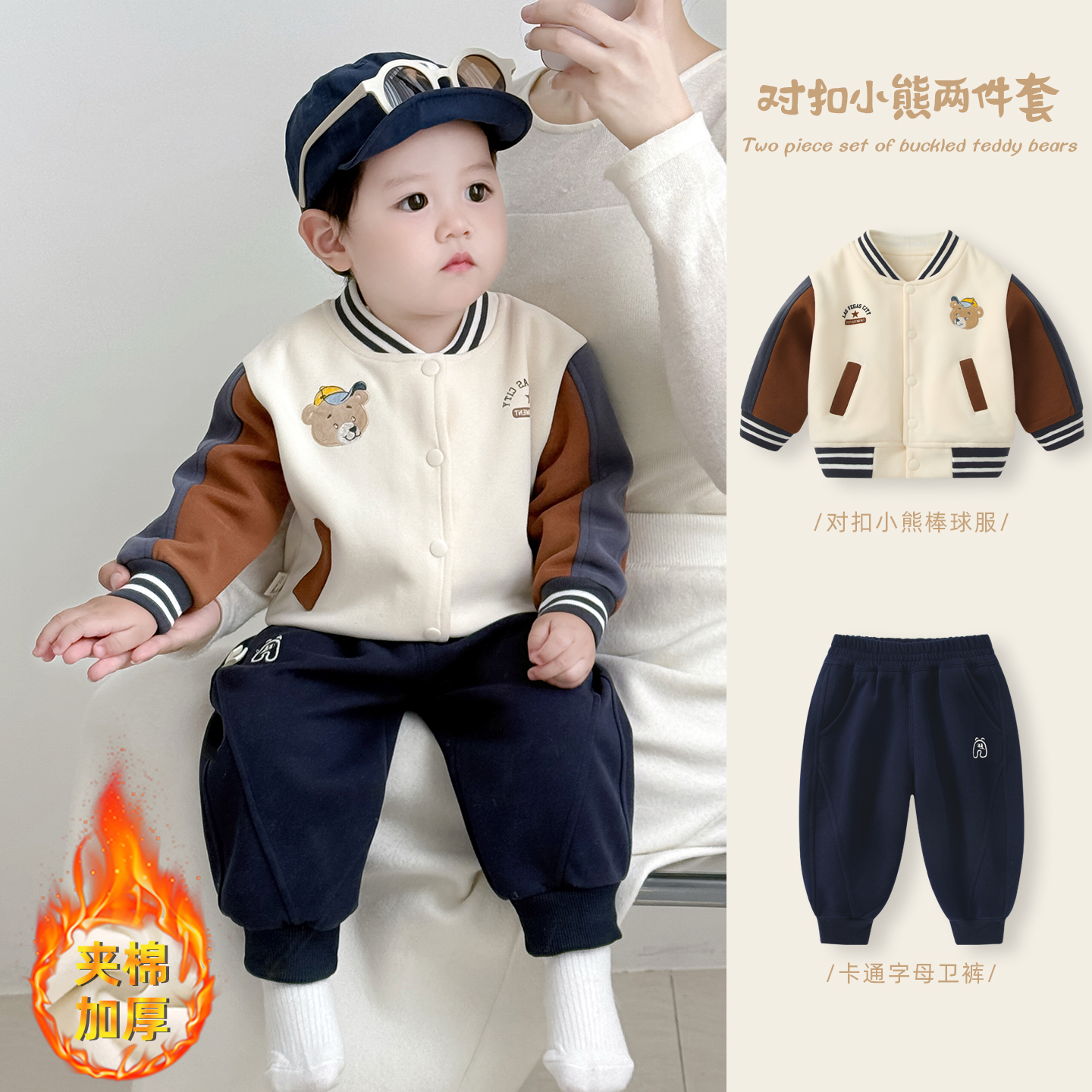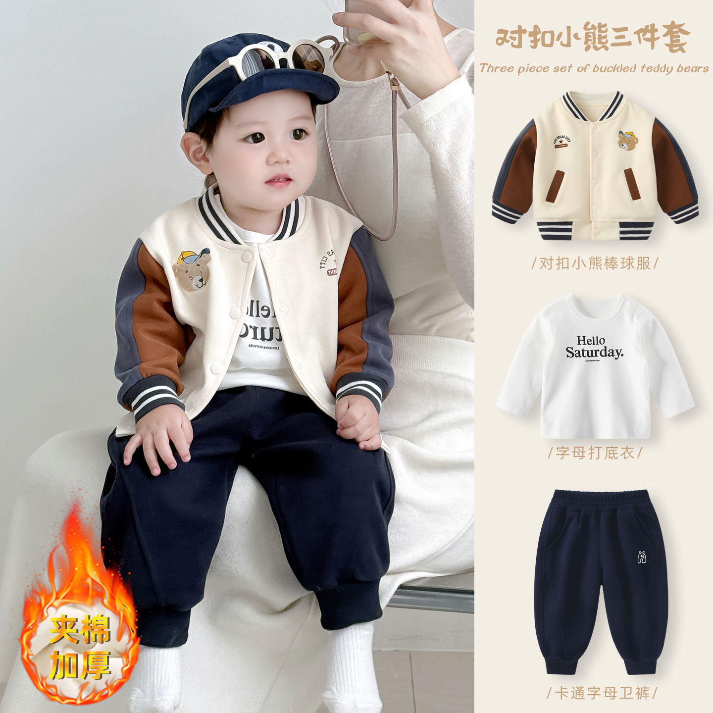波步男宝宝秋冬加厚外套婴儿卡通棒球服上衣男童夹棉衣服儿童冬装