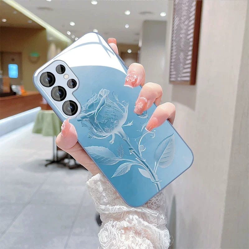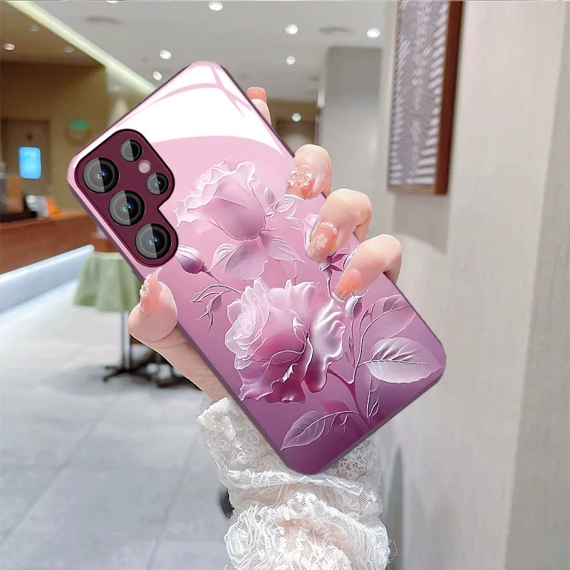Samsung三星手机壳女适用s23FE粉玫瑰花朵s24plus玻璃s22ULTRA苹果25u高级感A54全包14+55加A53带挂绳A52case