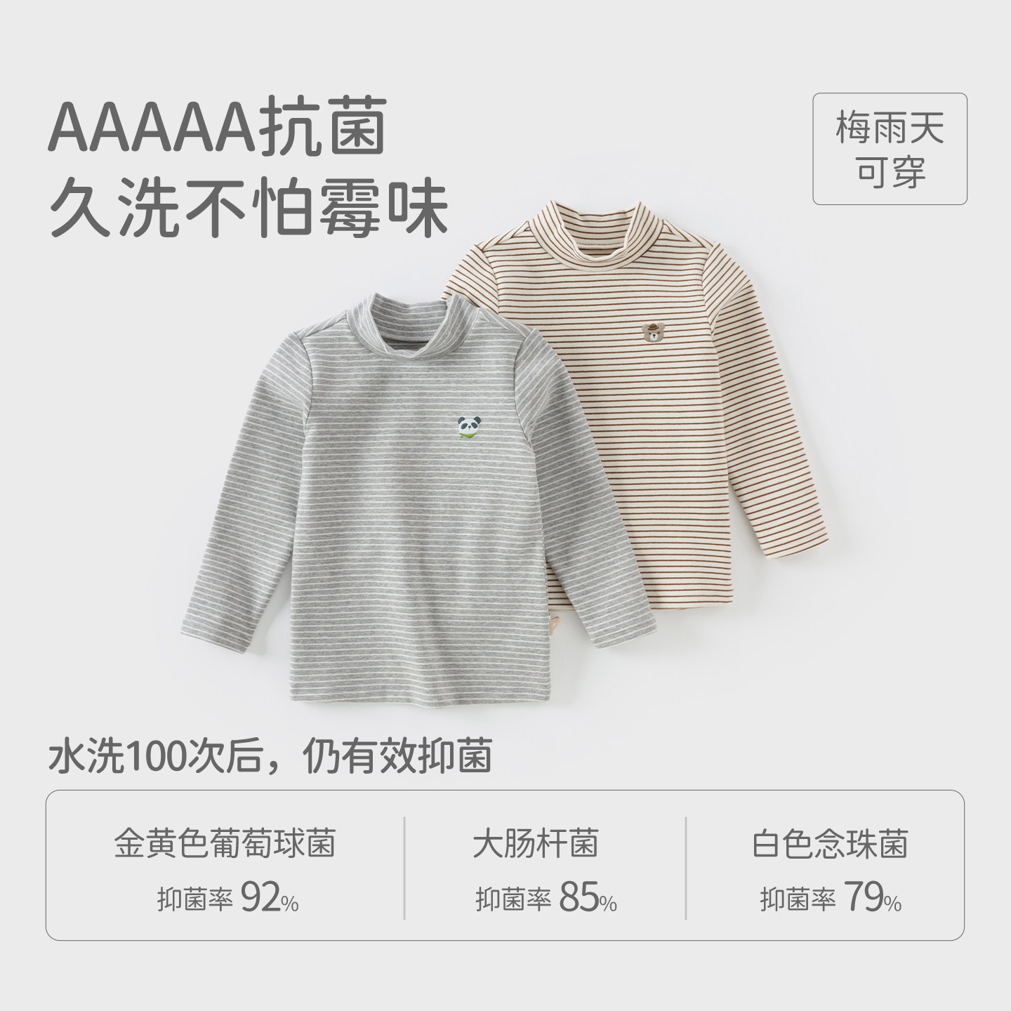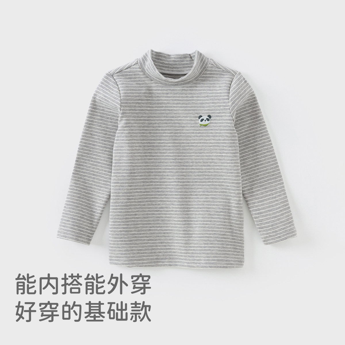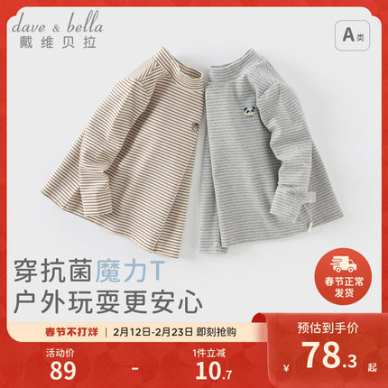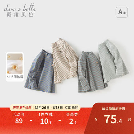 戴维贝拉儿童长袖T恤秋冬半高领男童打底衫男宝宝内搭上衣条纹T恤