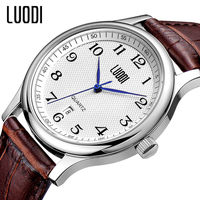 罗迪正品男士真皮表带休闲商务日历防水石英表简约复古情侣手表