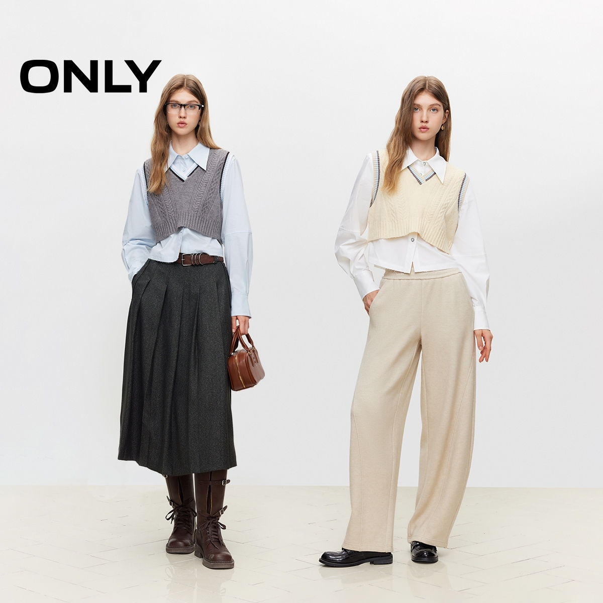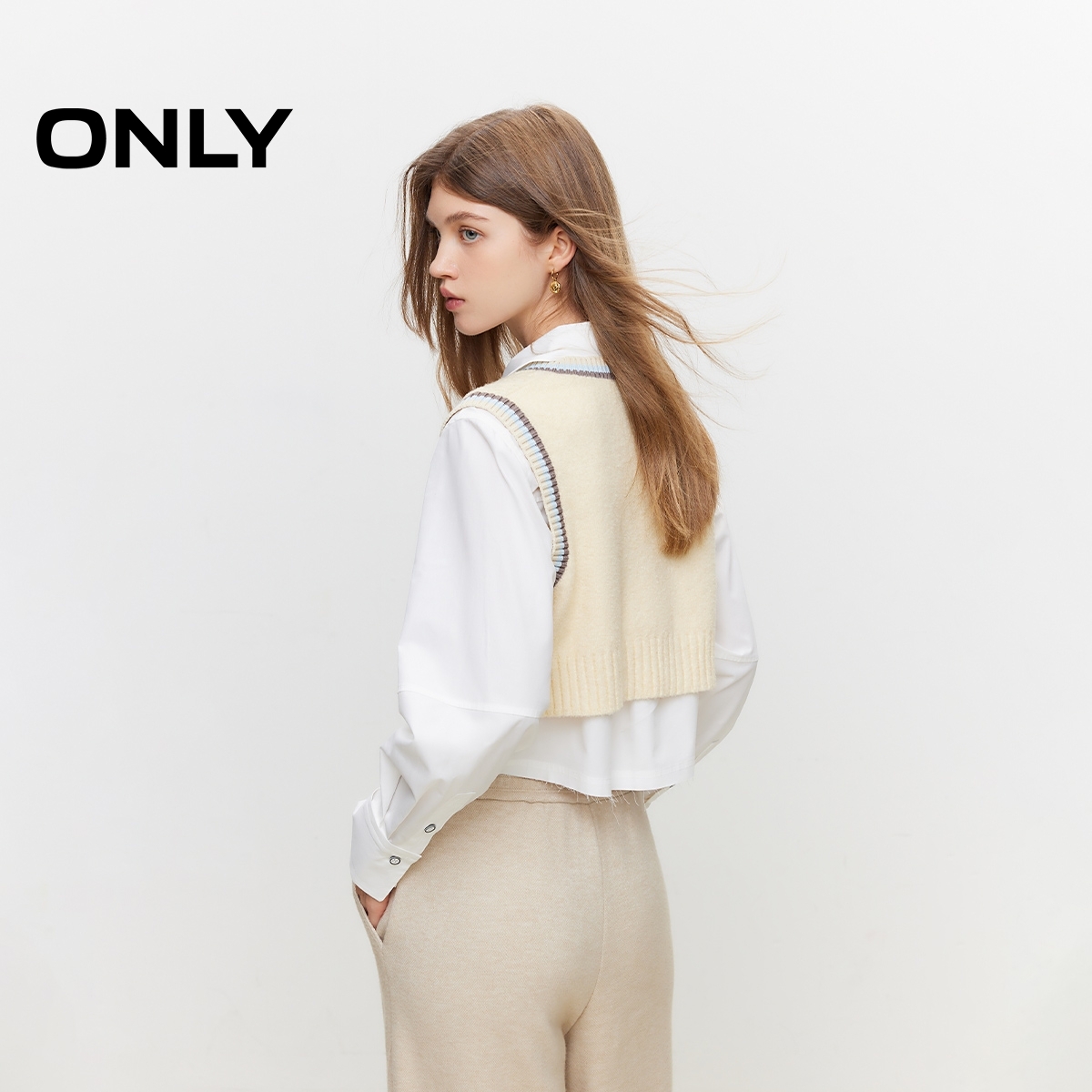 【ONLY奥莱】秋季学院风洋气拼色针织马甲套装衬衫女