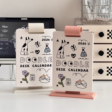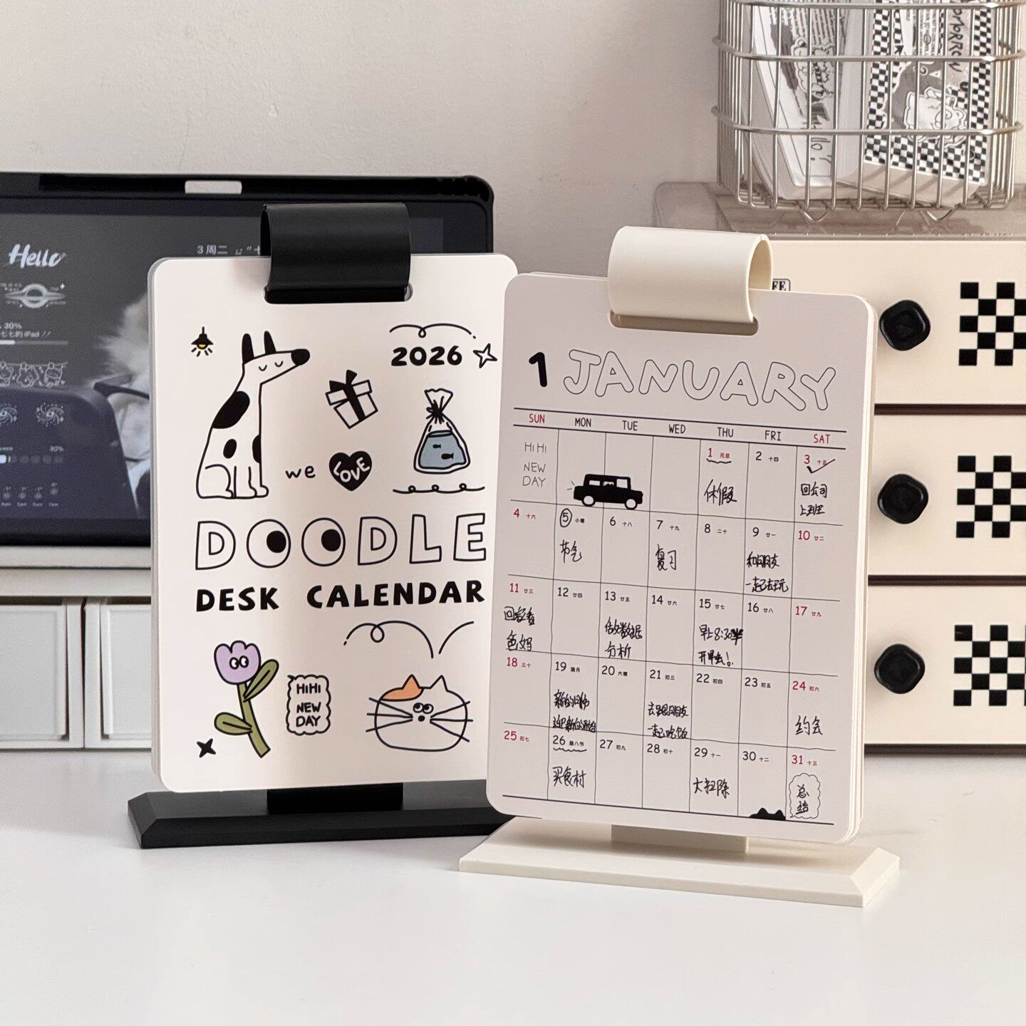 2026新款马年DIY涂鸦台历创意打卡记事日历办公室2026年桌面文艺小摆件计划本翻页月历高颜值迷你小台历
