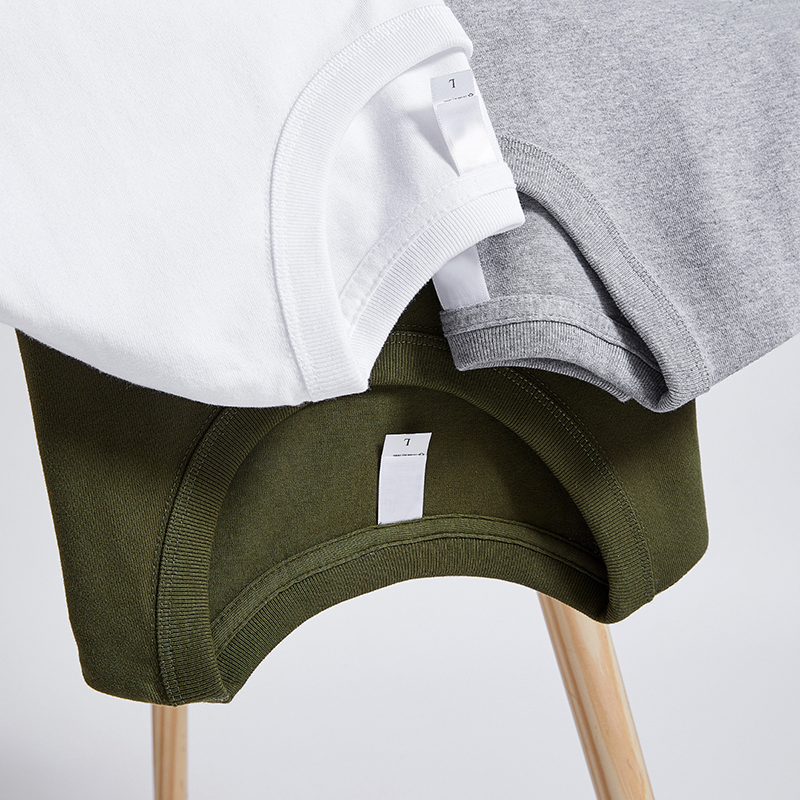 300克美式重磅纯棉T恤男夏季纯白色短袖三本针小领口半袖厚打底衫