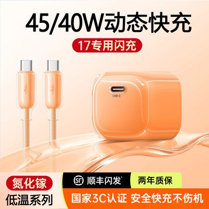 第一卫官方适用苹果17充电器45w动态氮化镓头iPhone16新款35W15低温快充30W套装typec冰透数据线手机插头40w
