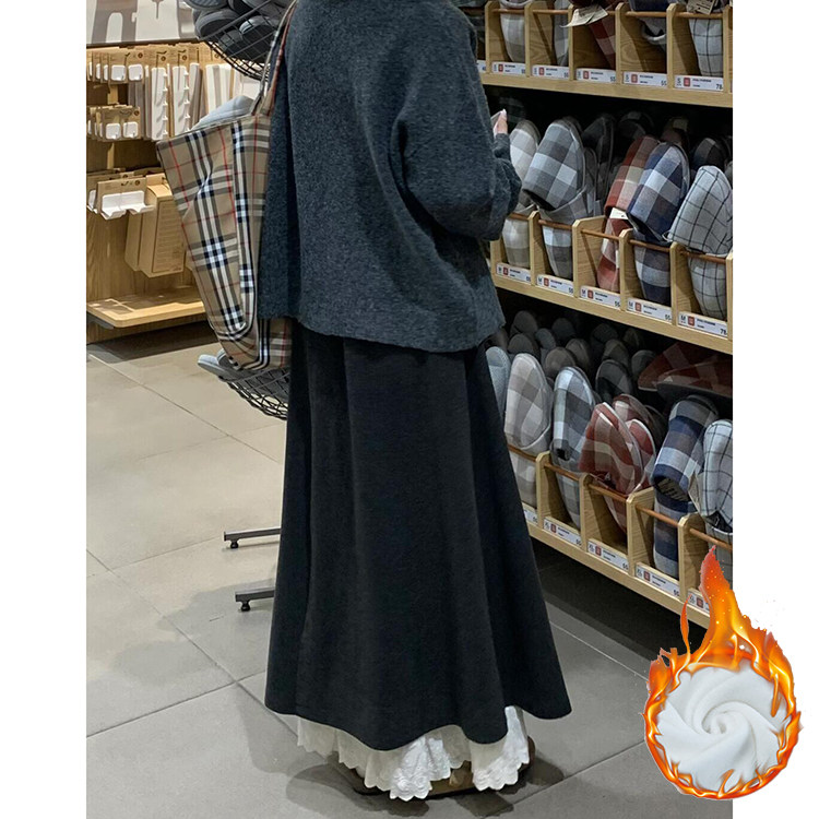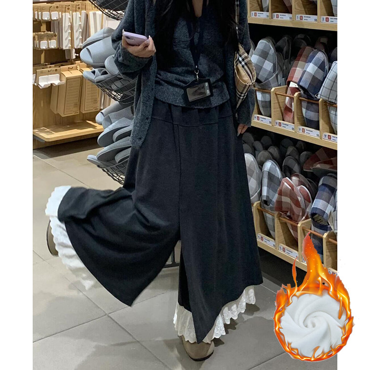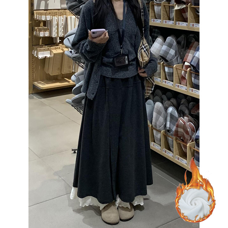 拼接设计感蕾丝花边裙裤女秋冬季2025新款加绒加厚慵懒风半身裙裤