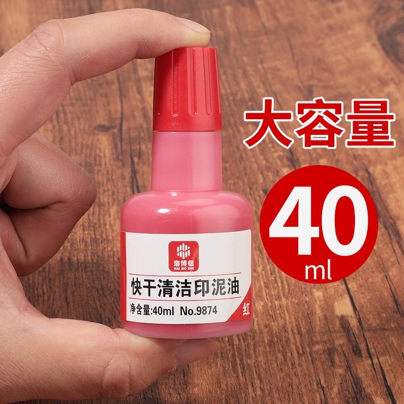 海博信快干印油红色大容量印泥油印章墨水黑色蓝色印台专用补充液大瓶按手印指纹财务会计办公用品