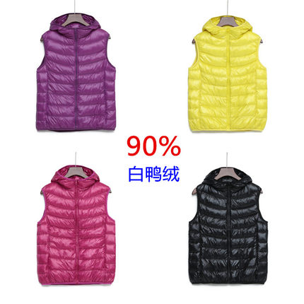 清仓特价女装轻薄短款羽绒服马甲女秋冬连帽背心修身90白鸭绒外套