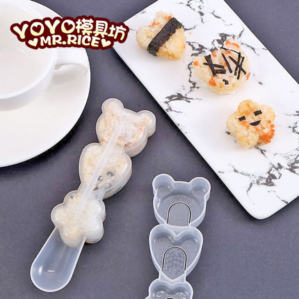 小熊爱心花朵 饭团模具 三连卡通小号饭团模具 可爱造型便当工具