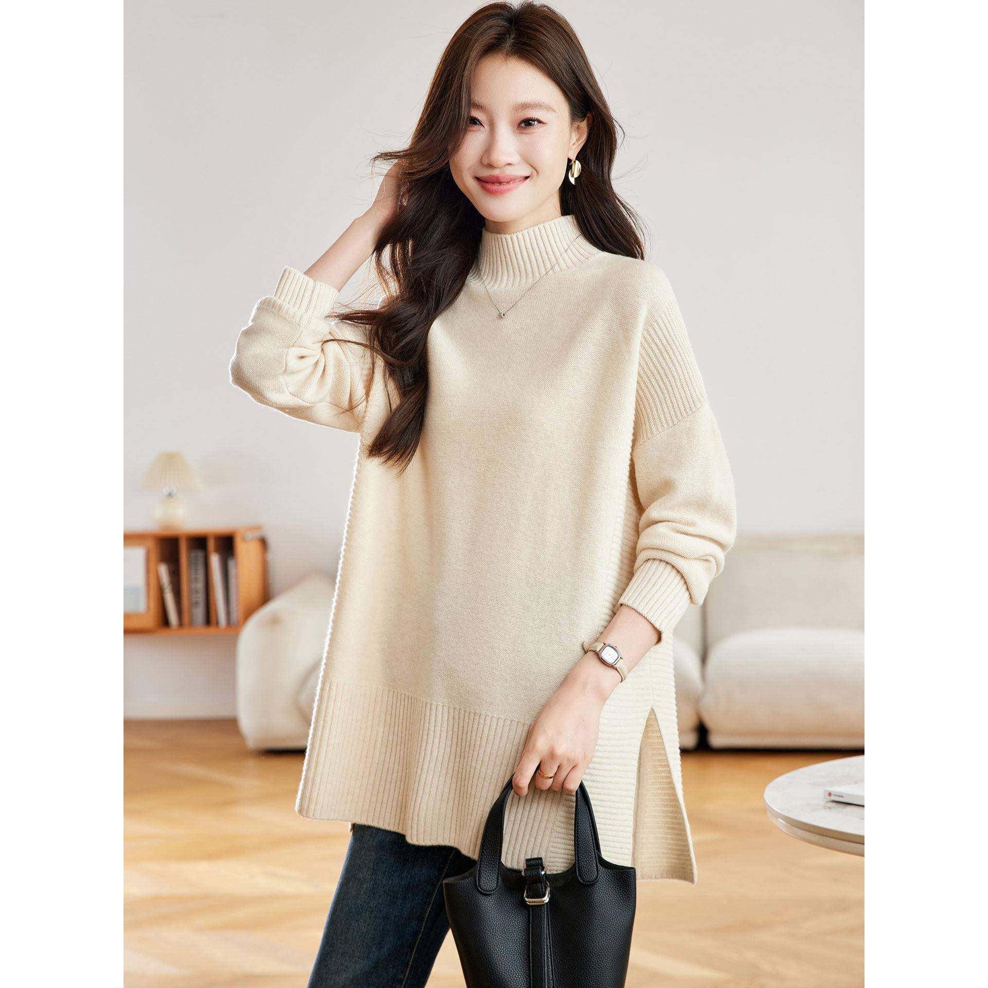 慵懒风高领毛衣女宽松中长款灰色针织羊毛衫秋冬2025加厚保暖内搭