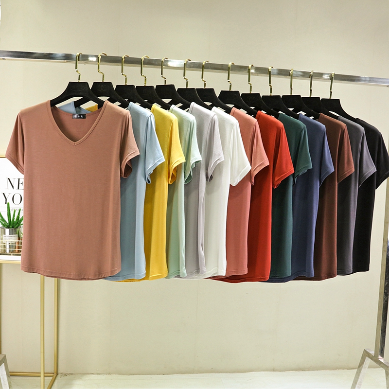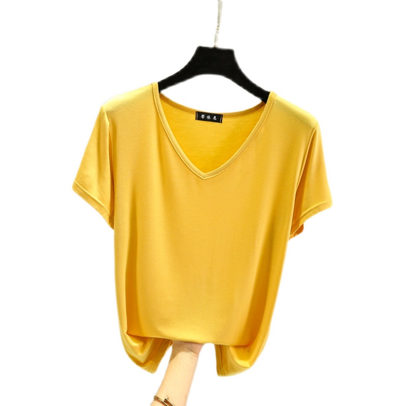 夏季韩版莫代尔T恤短袖女V领体恤宽松显瘦打底衫百搭纯色上衣大码