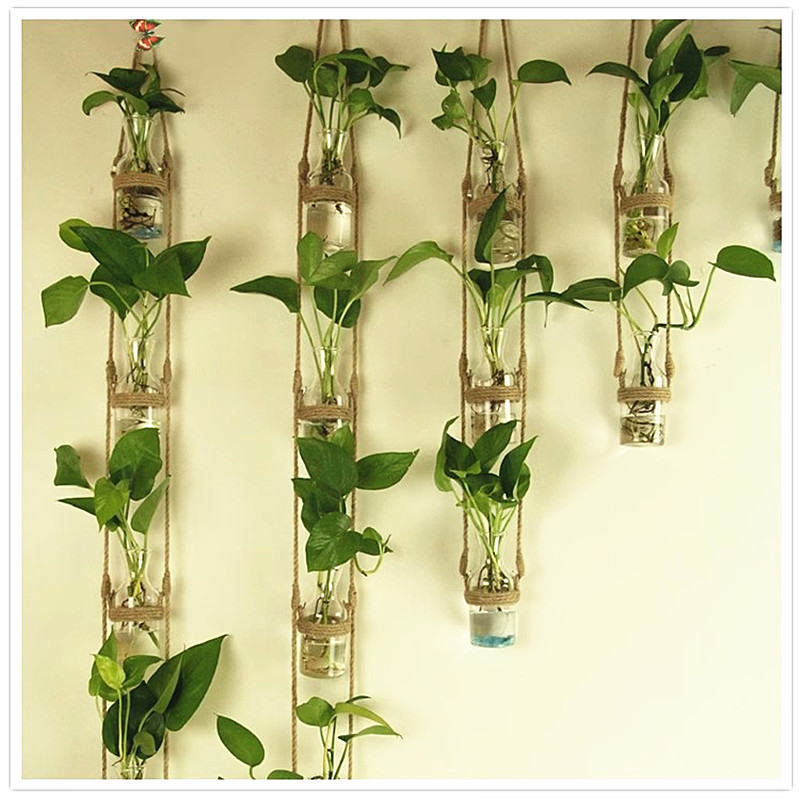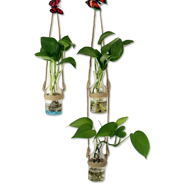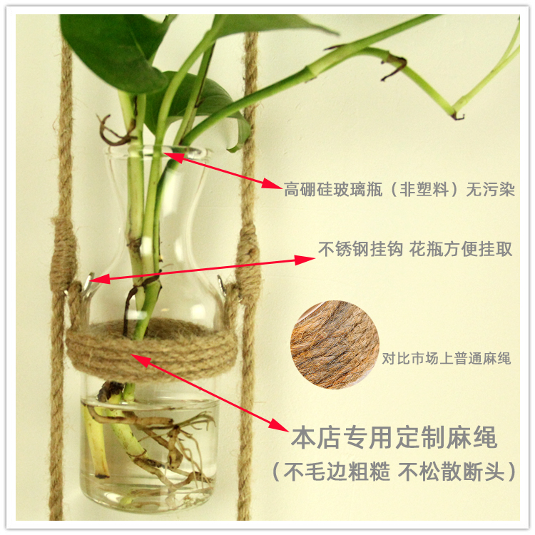 创意DIY壁挂玻璃水培植物麻绳花瓶 家居幼儿园墙面装饰挂件简约