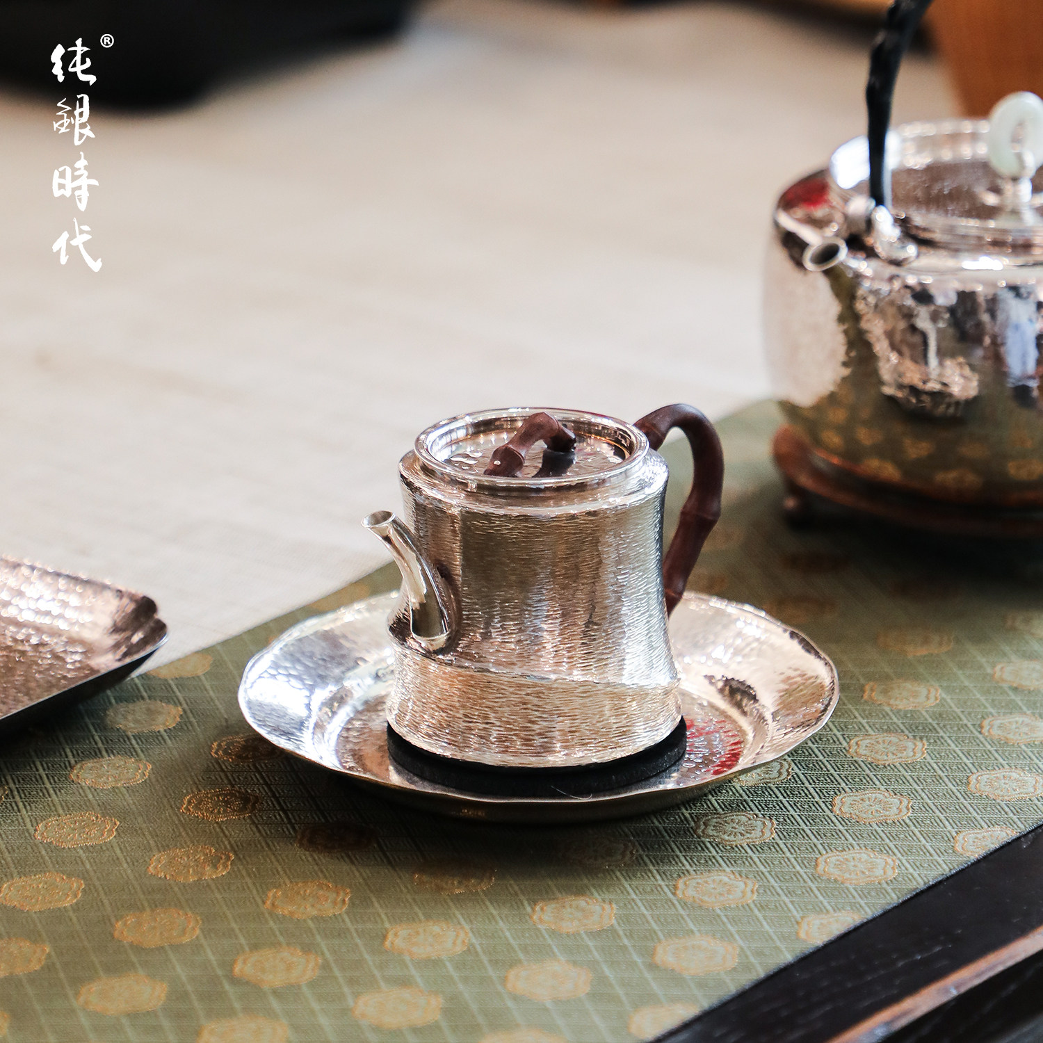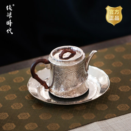 纯银时代君竹泡茶壶足银999纯手工茶壶中式茶具家用日常银壶180ml
