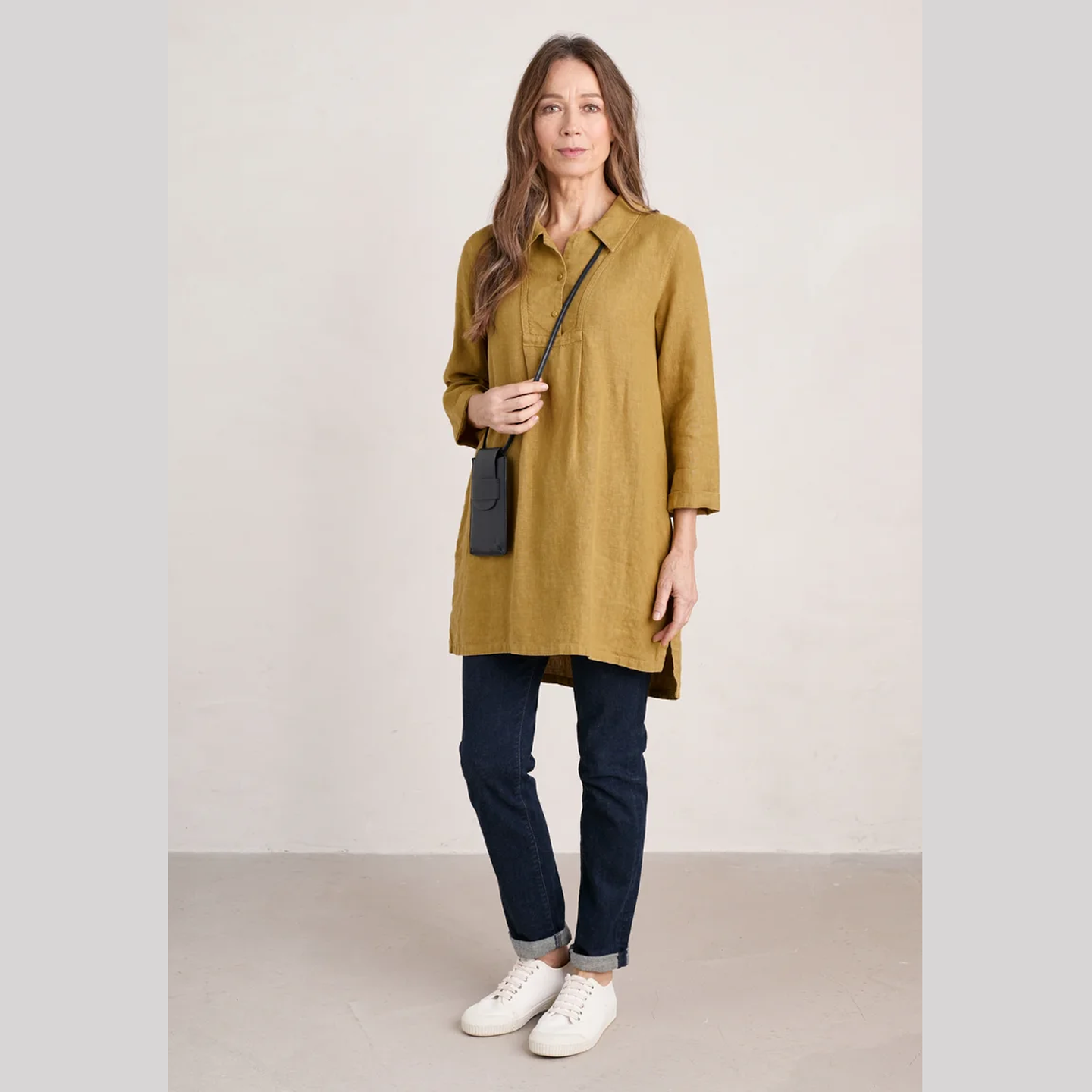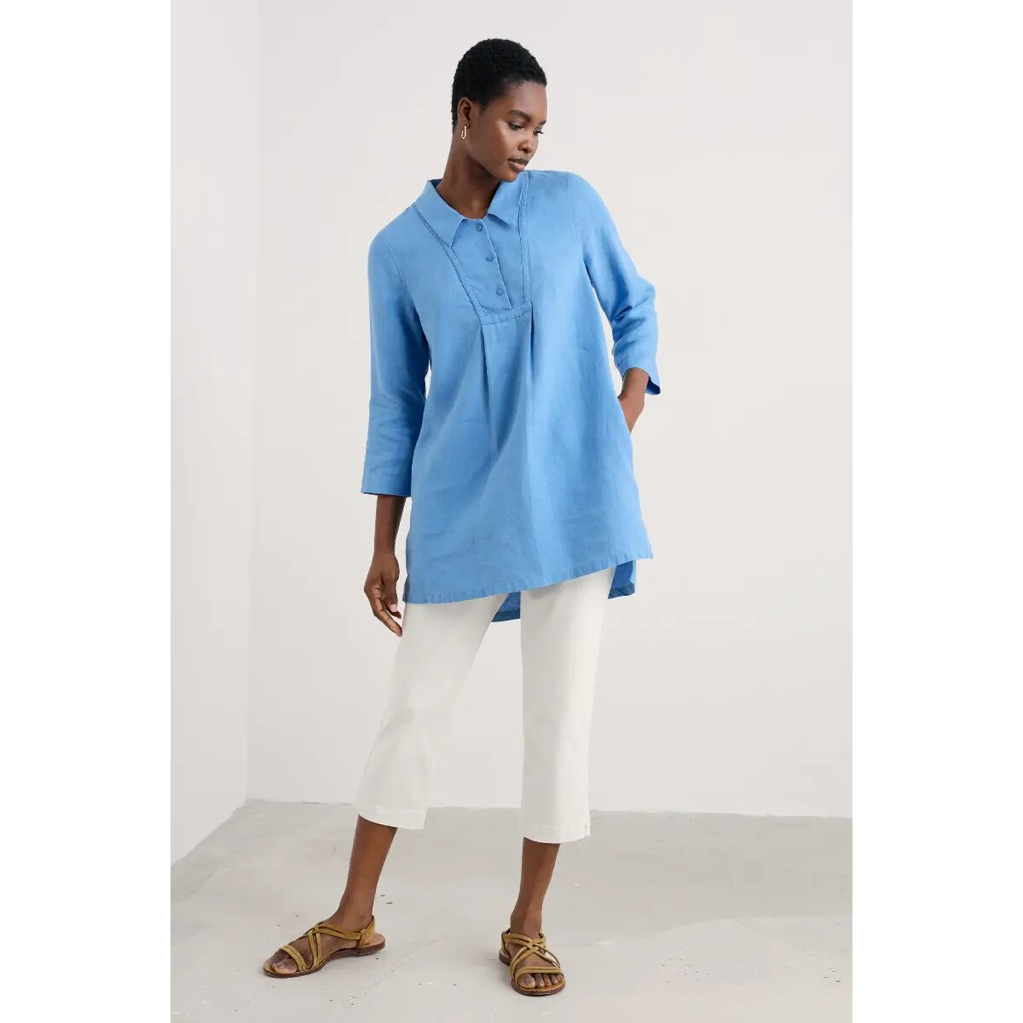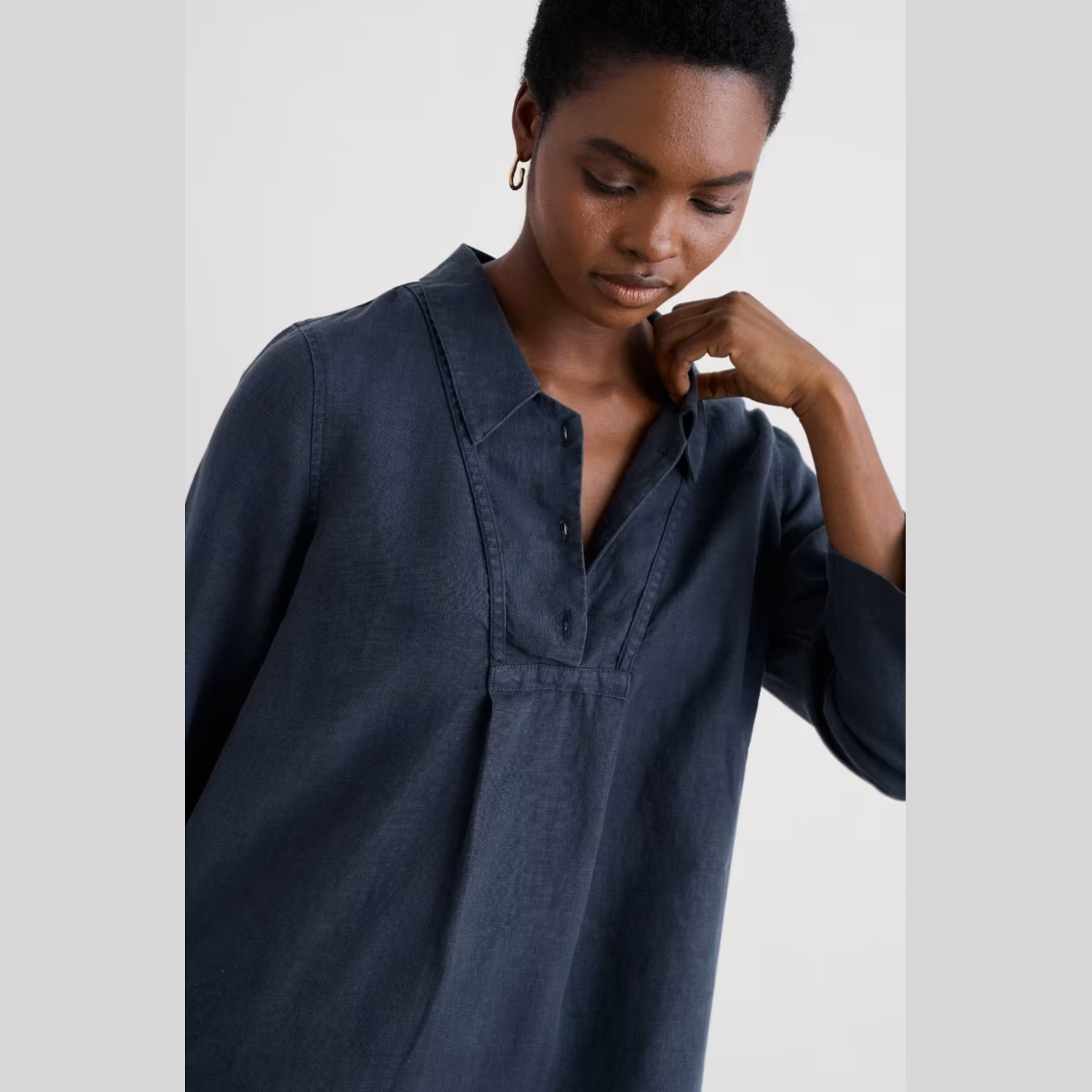 英国海盐翻领100%亚麻八分袖衬衫休闲上衣外套外贸原单女大码夏秋