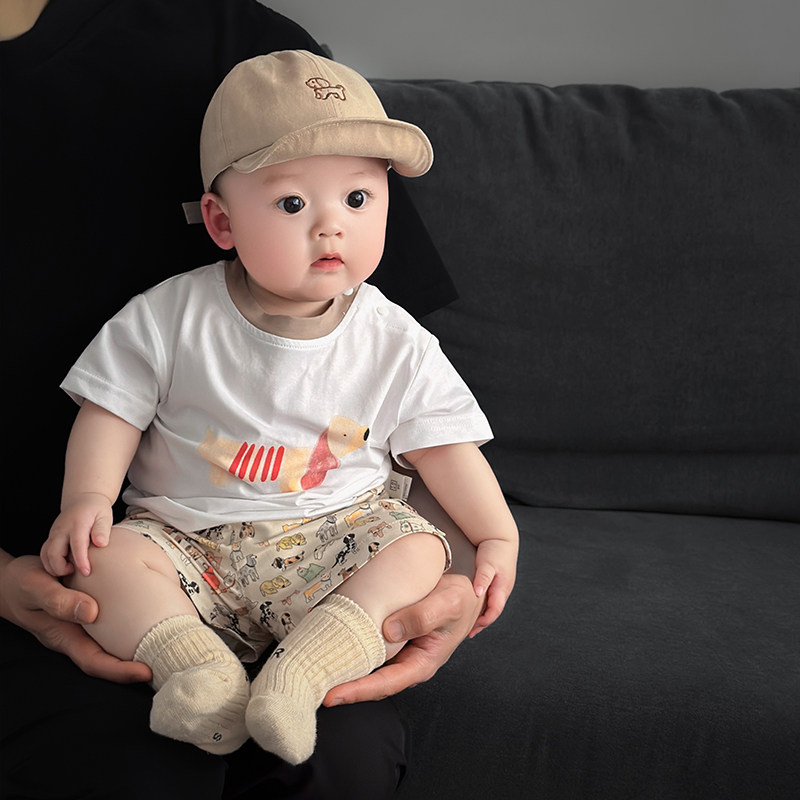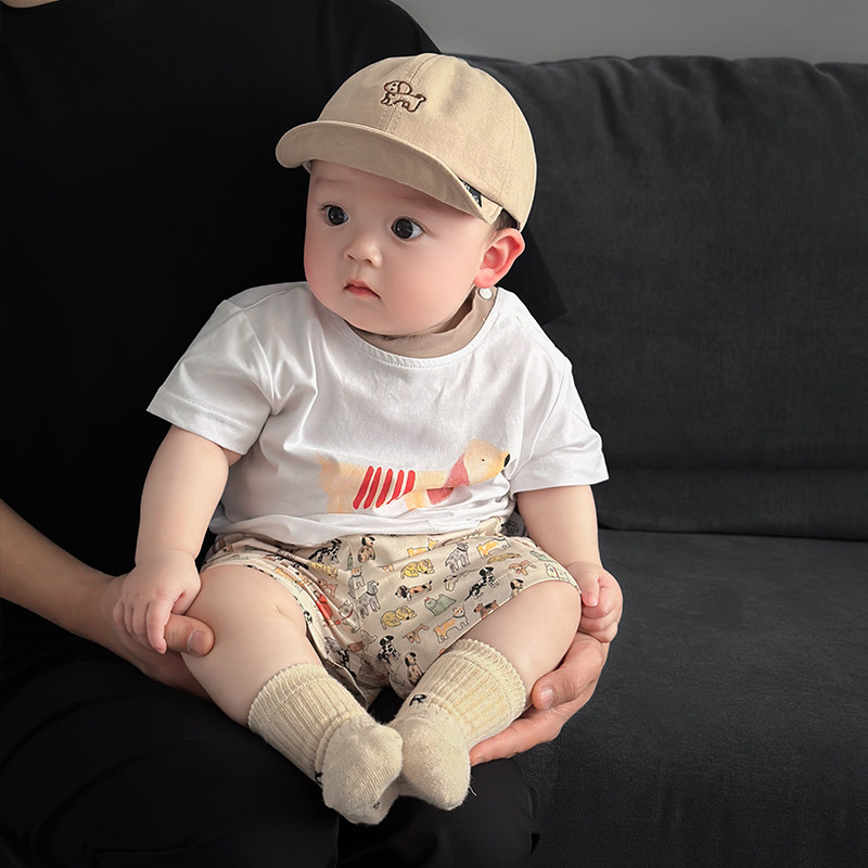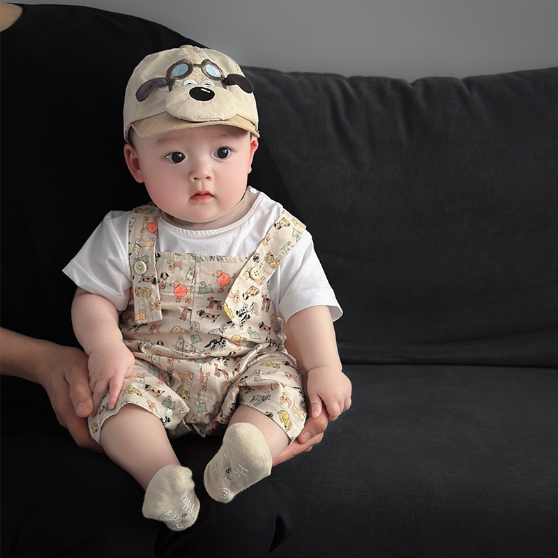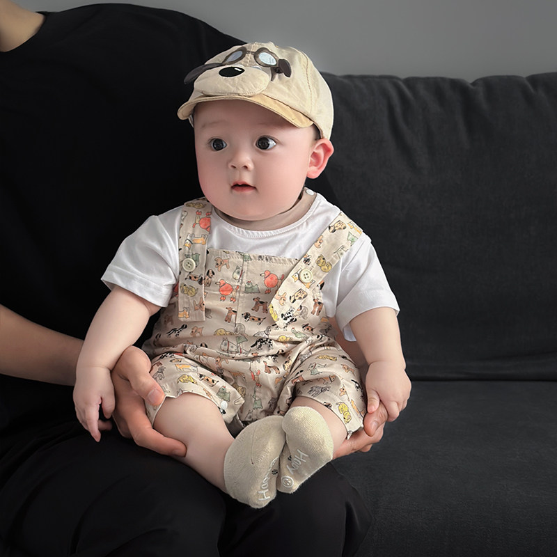 男童夏季薄款T恤短裤套装婴儿可爱卡通印花短袖宝宝洋气背带短裤