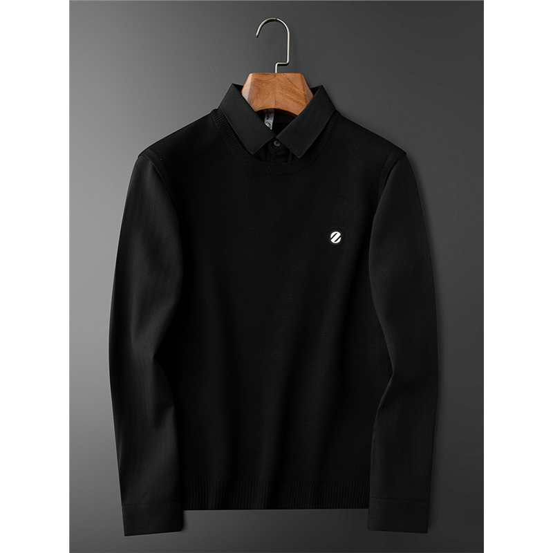 高档黑色假两件针织衫男士