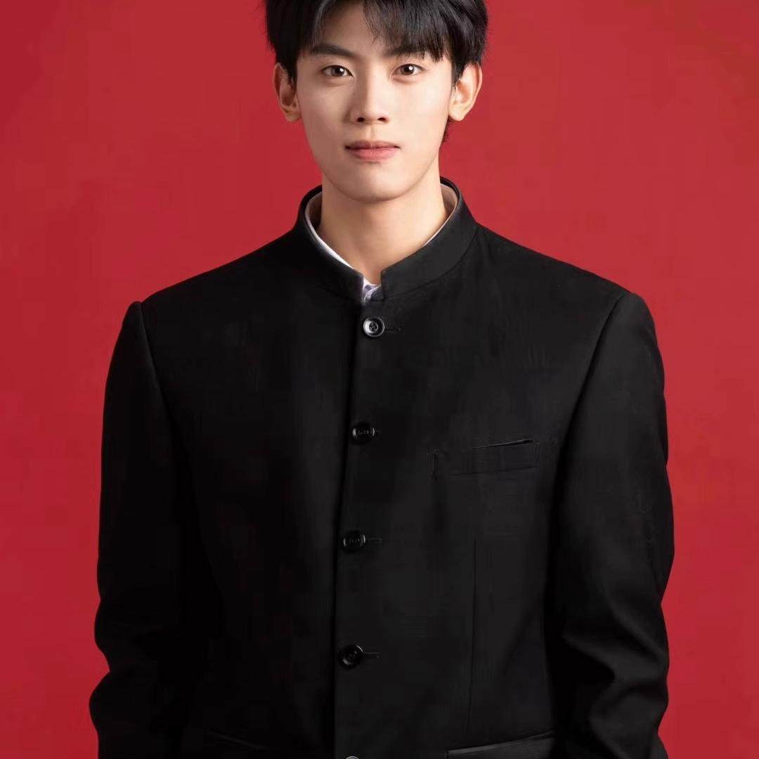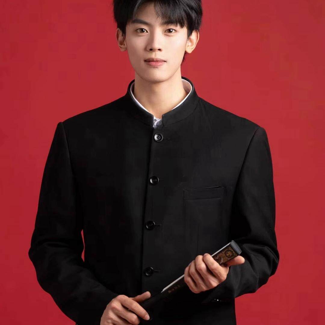 新中式中山装西服国潮男士痞帅青少年中国风立领垫肩西装唐装外套