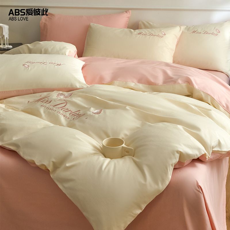 ABS/爱彼此全棉四件套简约刺绣被套撞色纯棉学生宿舍三件套四季用