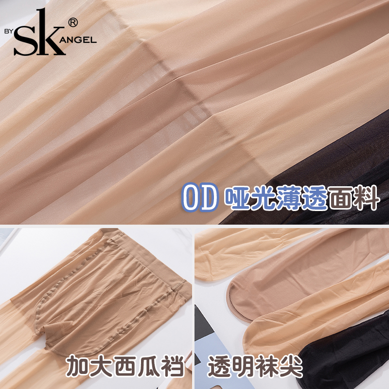 SK黑丝0d高透丝袜超薄隐形防勾全透明夏季黑色大码加长薄款连裤袜
