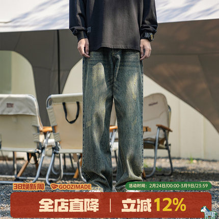 GOOZI MADE 水洗牛仔裤男春秋款美式宽松阔腿裤子直筒休闲裤子