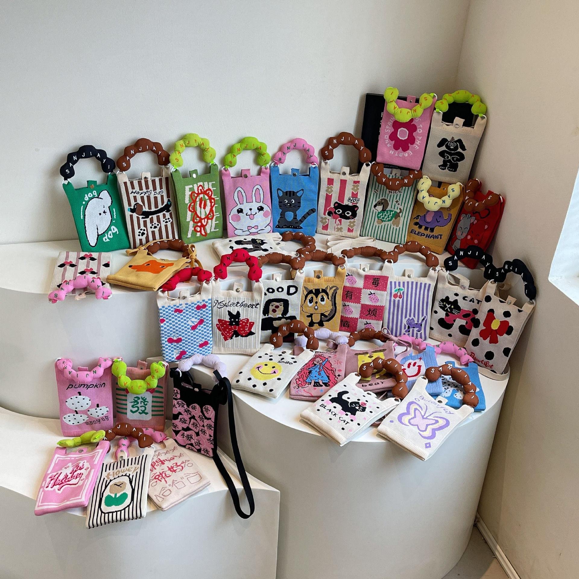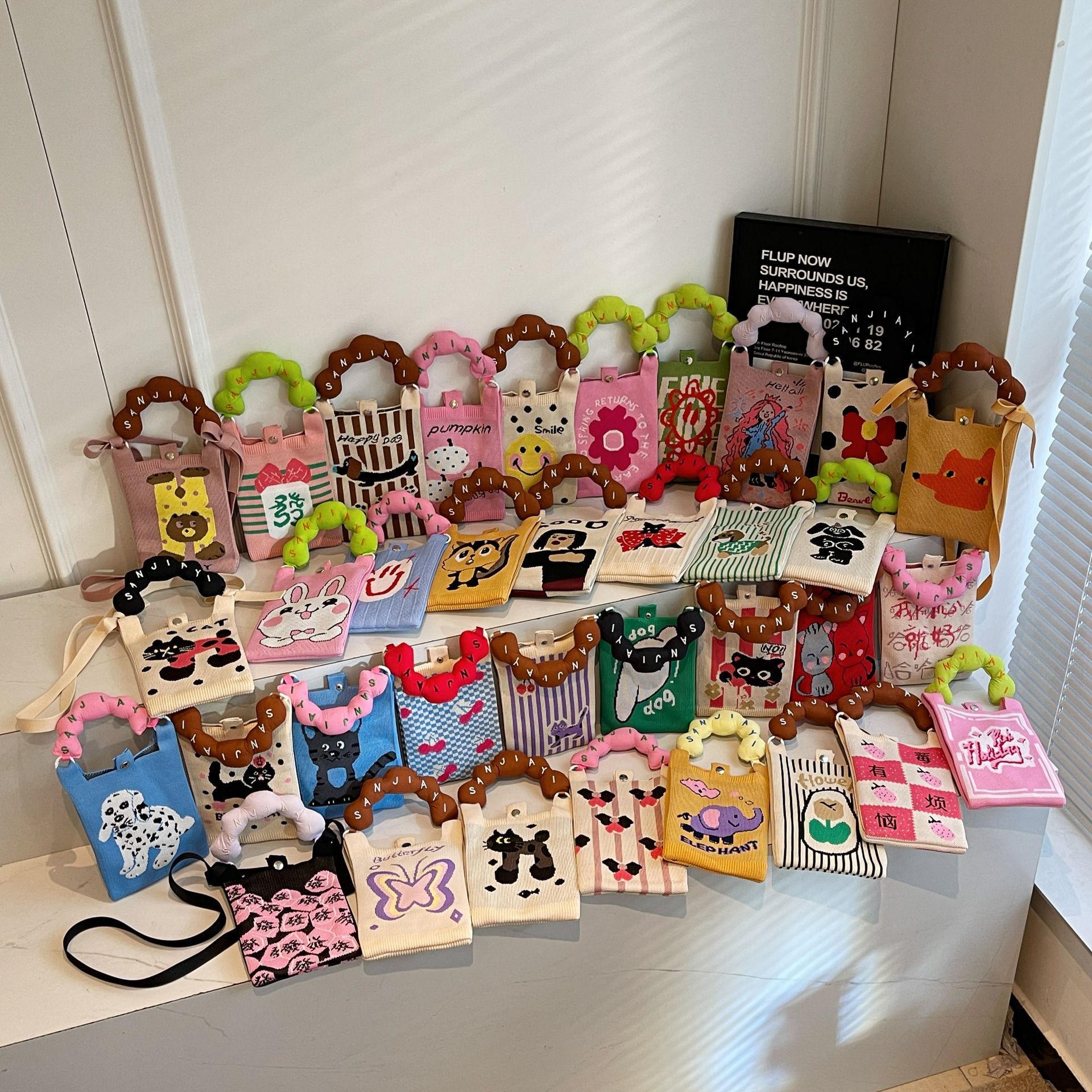 韩版小众设计可爱卡通迷你针织手机包百搭小巧便携通勤斜挎小方包