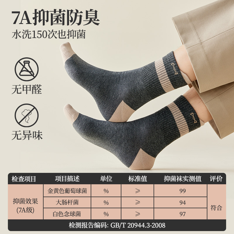 猫人男士袜子纯棉防臭抑菌中筒袜