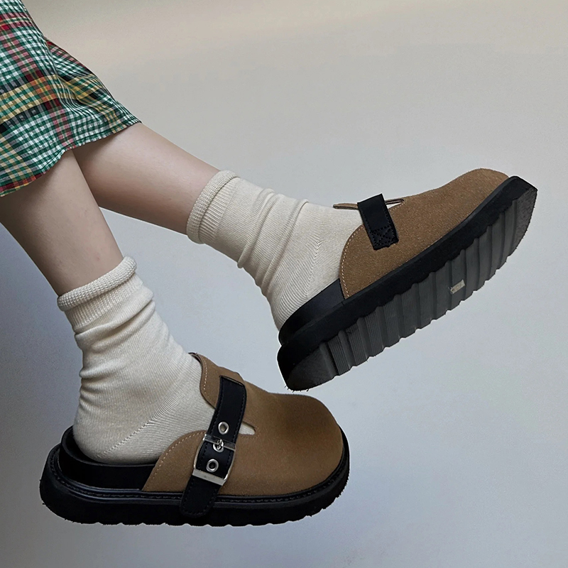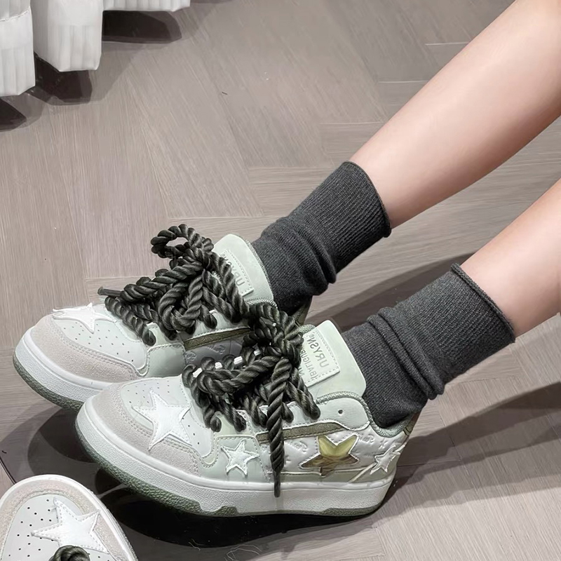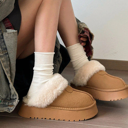 无骨堆堆袜子女纯色黑白灰松口卷边中筒袜月子袜勃肯鞋雪地靴搭配