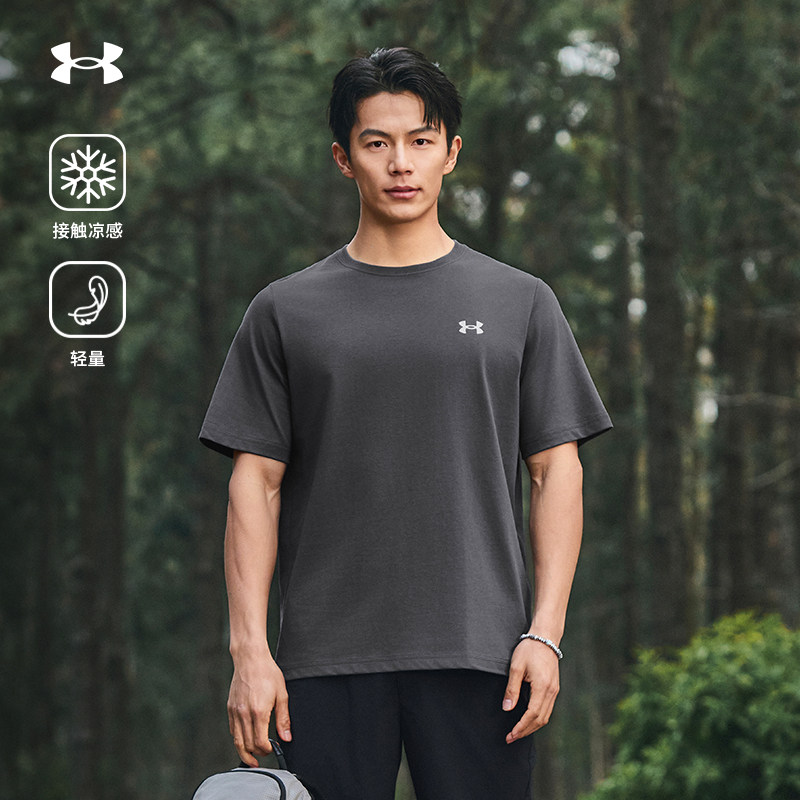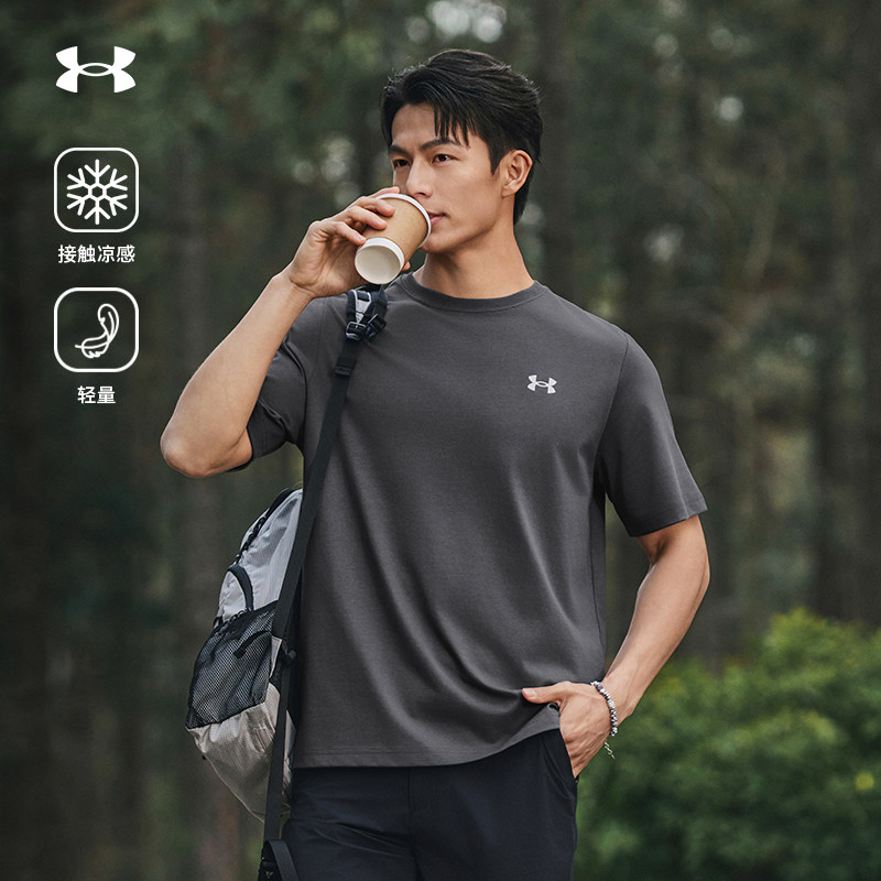 安德玛官方凉感短袖T恤男2025夏季新款户外轻量舒适运动圆领上衣
