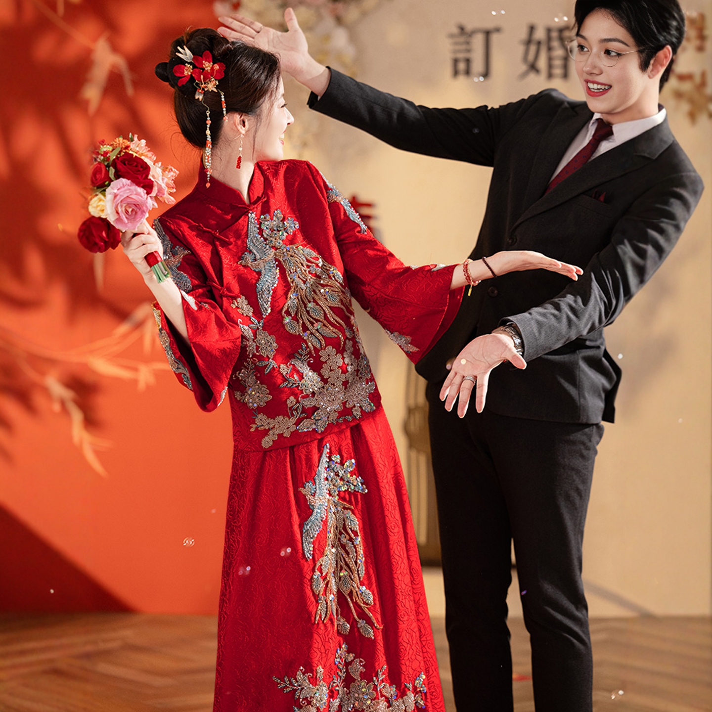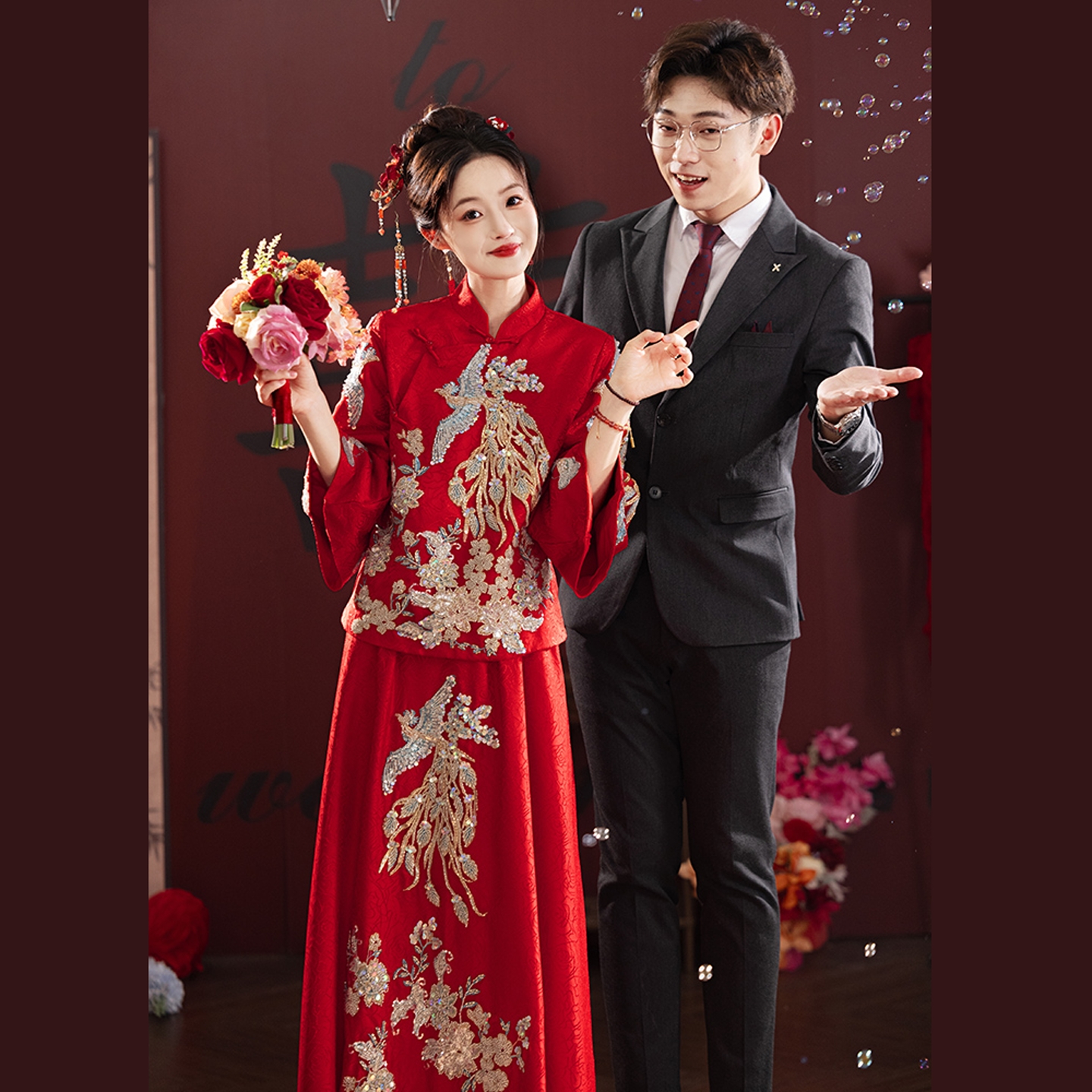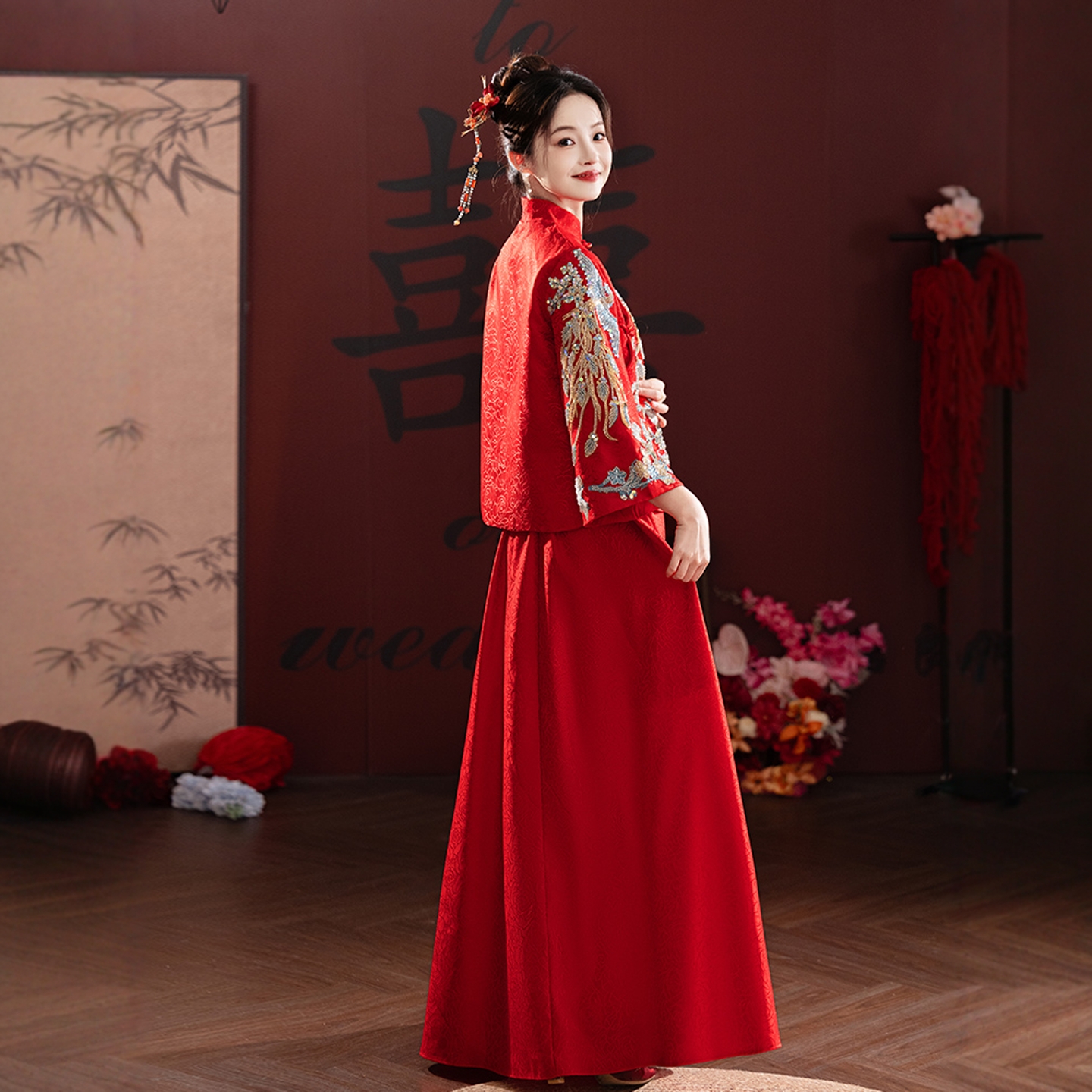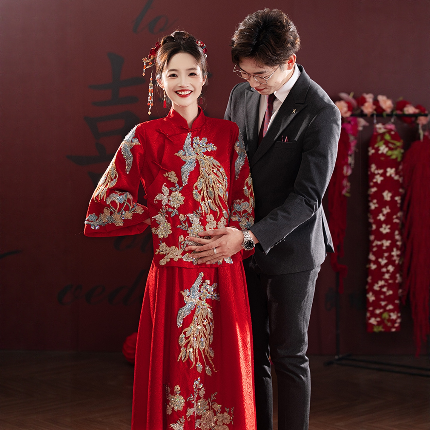 海棠记中式孕妇敬酒服气质新娘