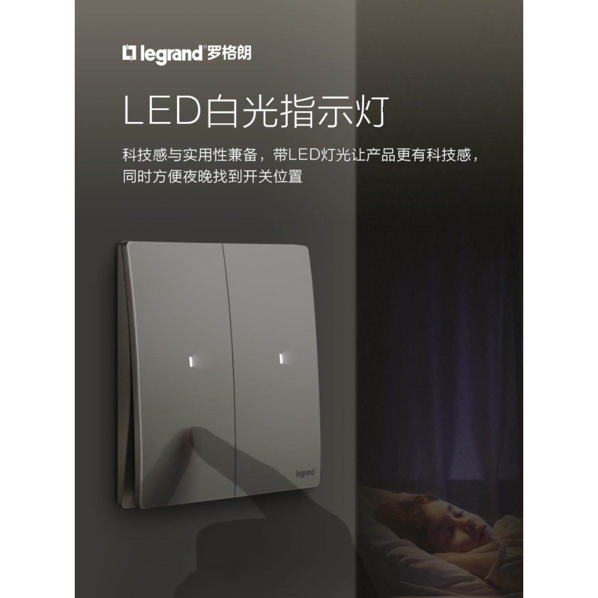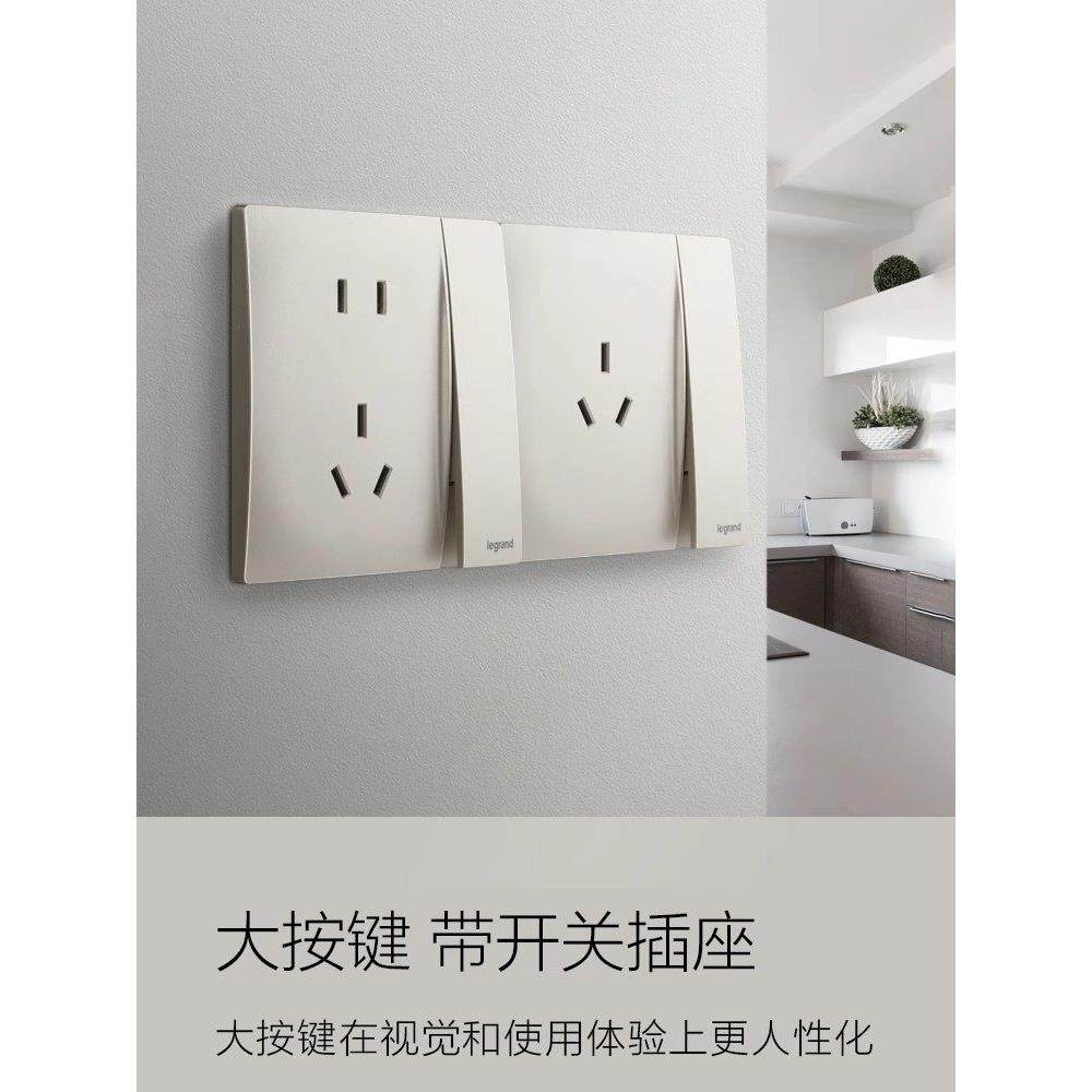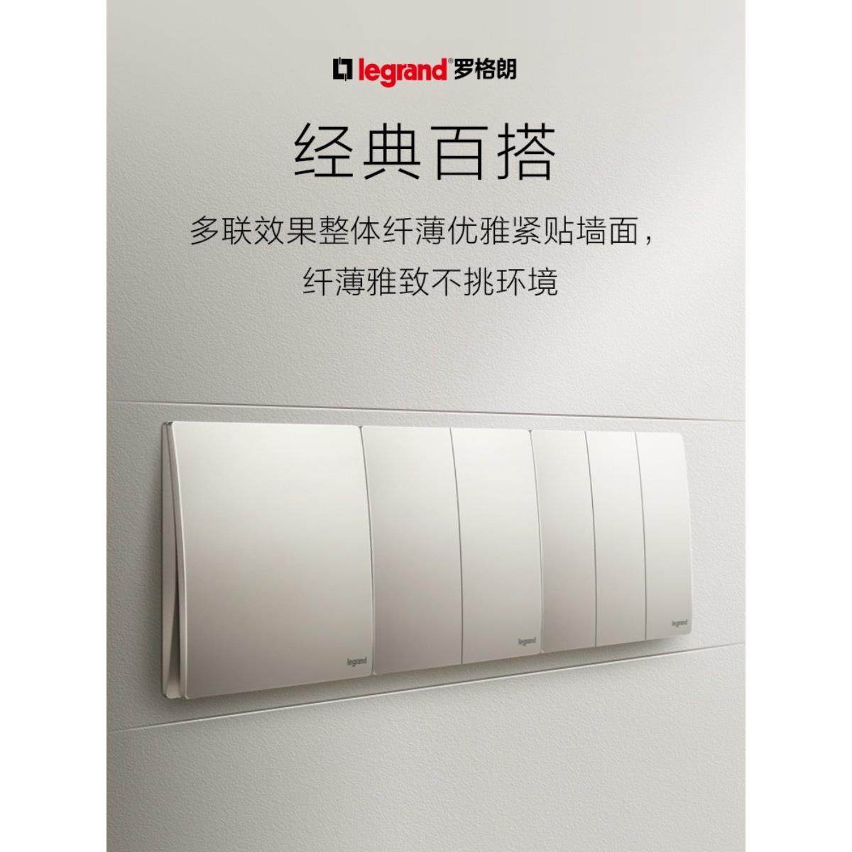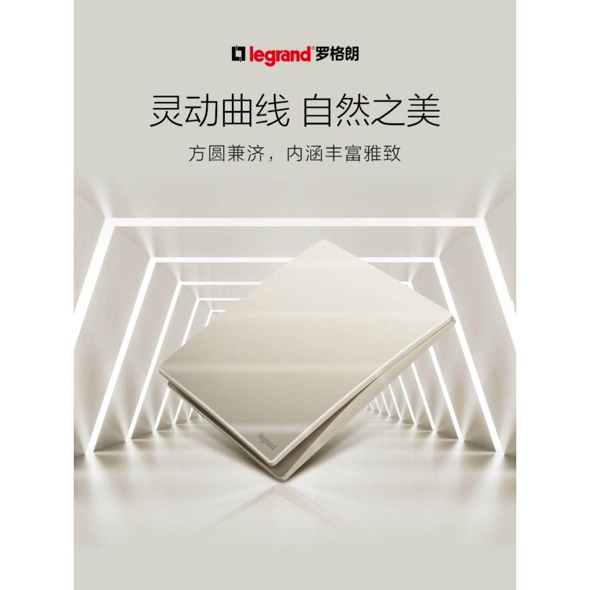 罗格朗开关插座面板未莱粉珀金色一开五孔usb多控空调电脑86哑光