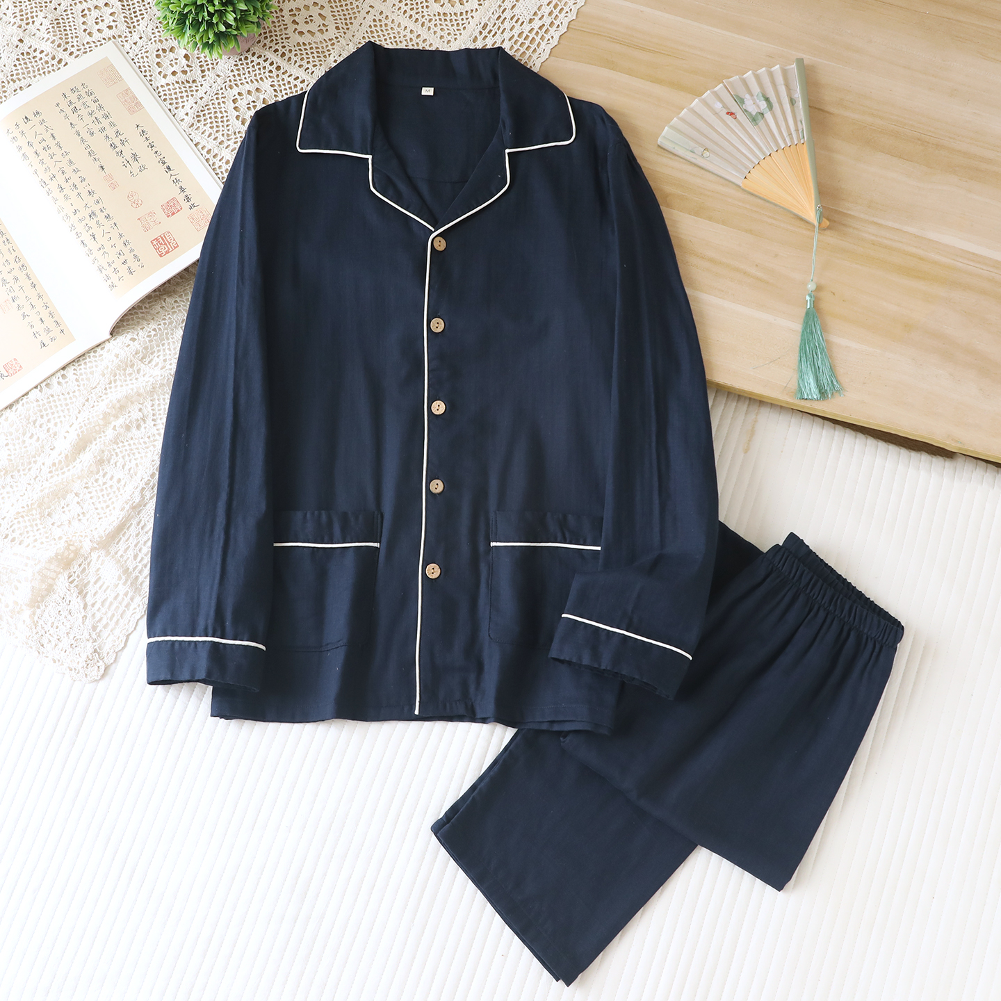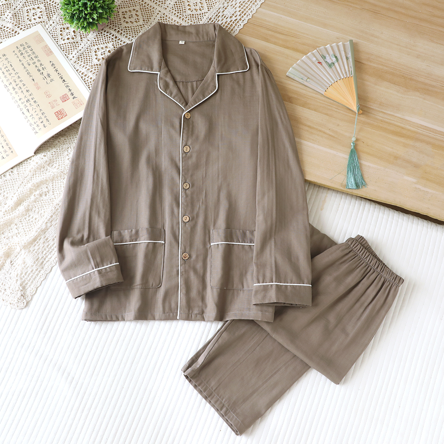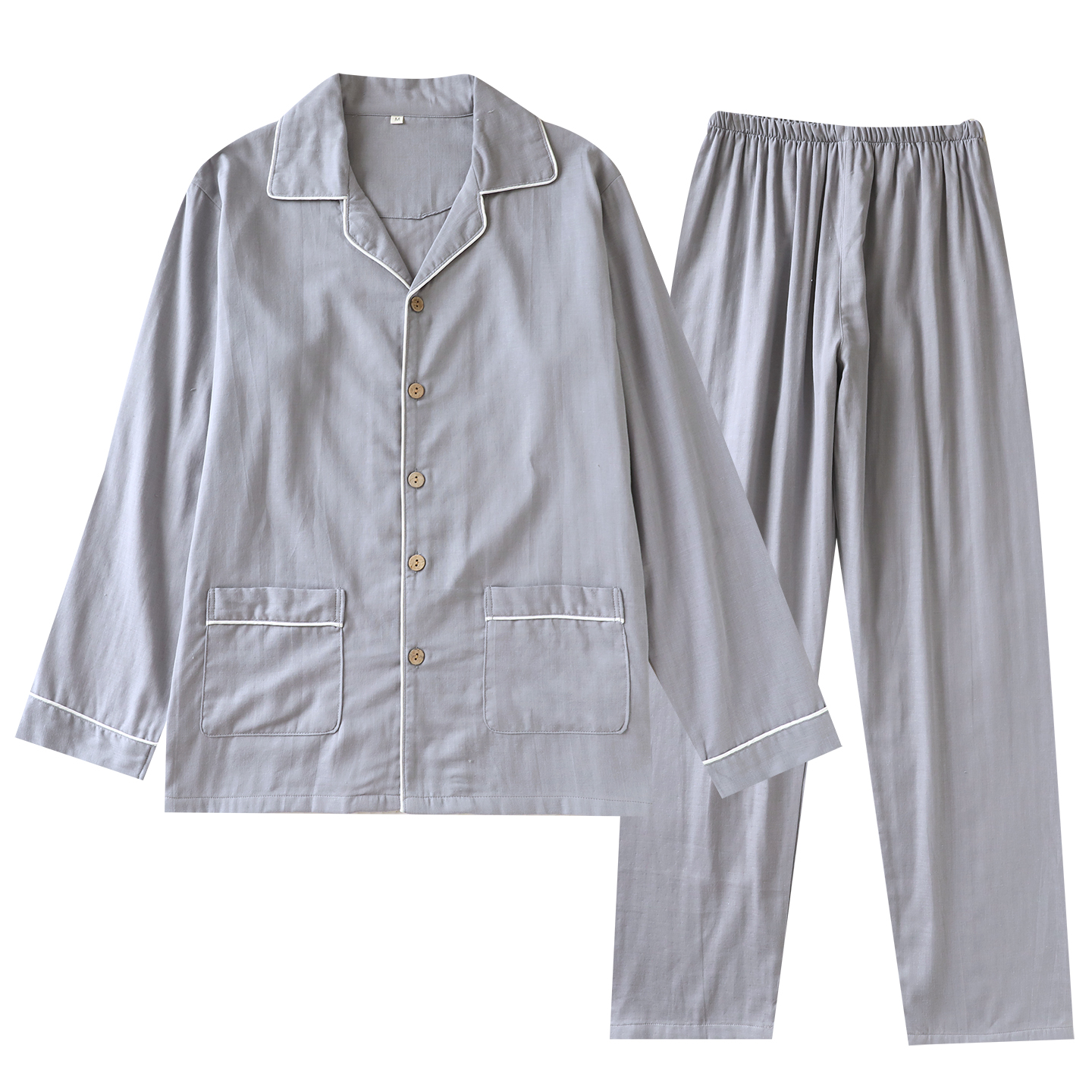 无印风男士清爽纱布全棉长袖睡衣