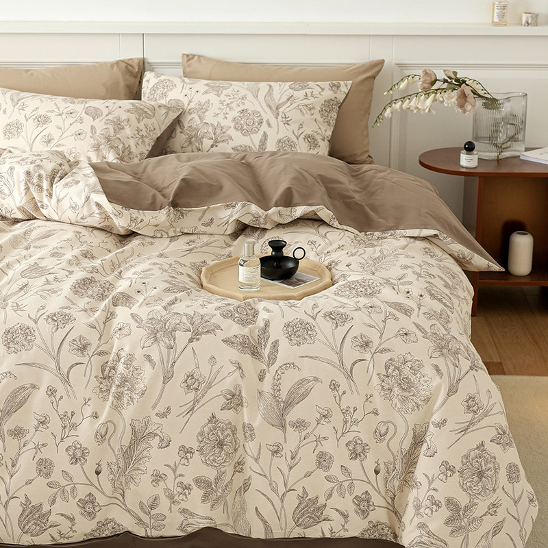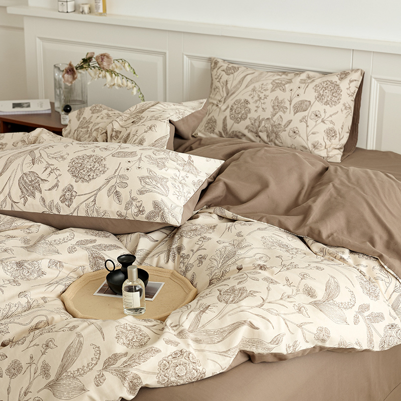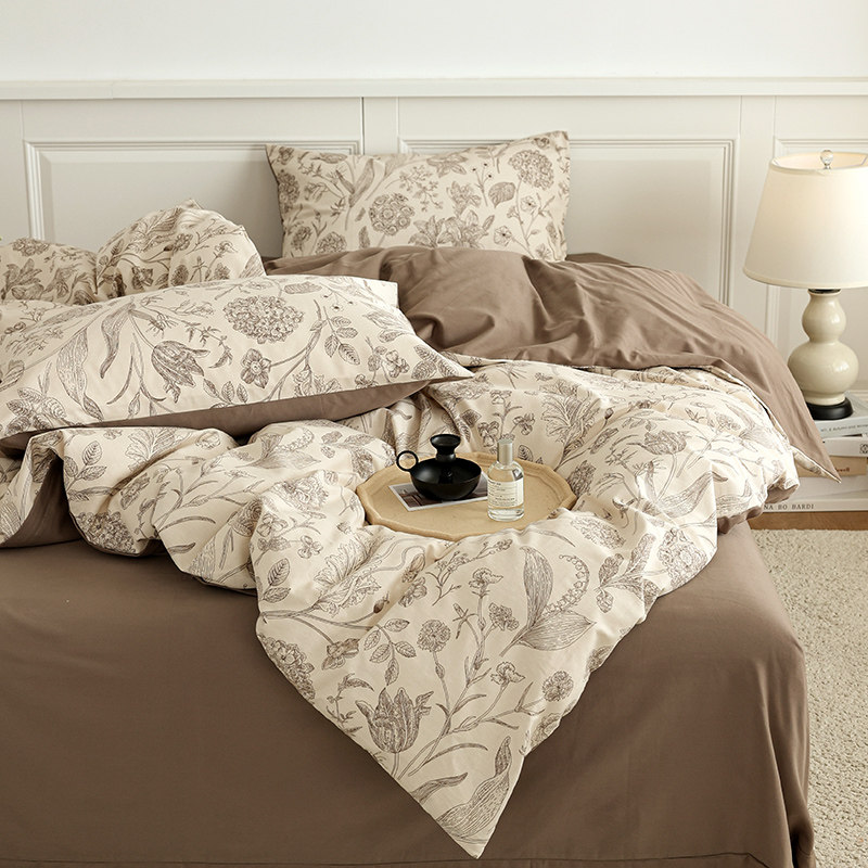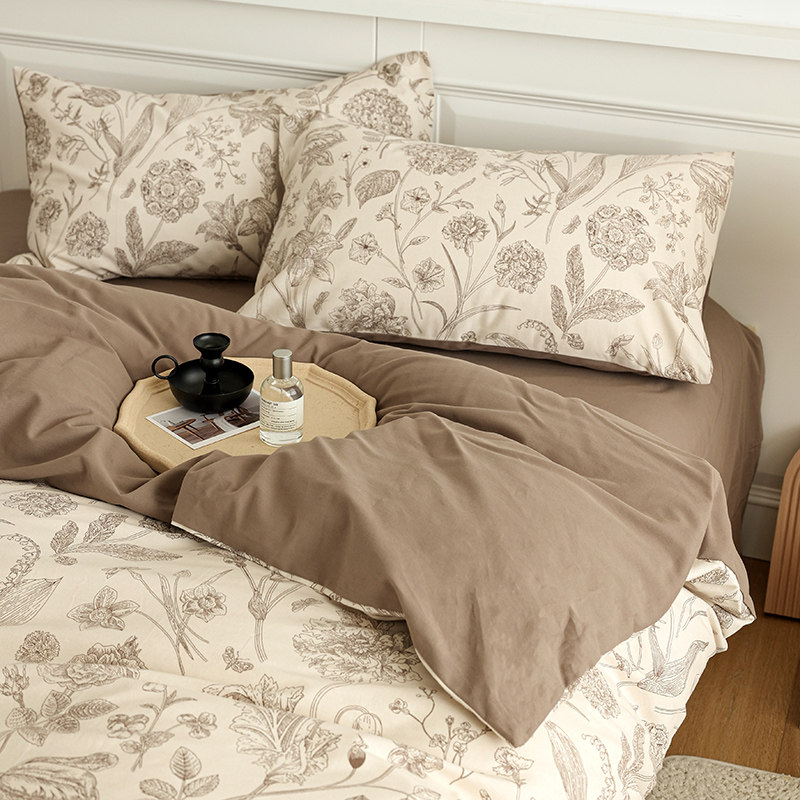 法式复古碎花磨毛全棉床上四件套纯棉田园花卉被套床笠床单三件套