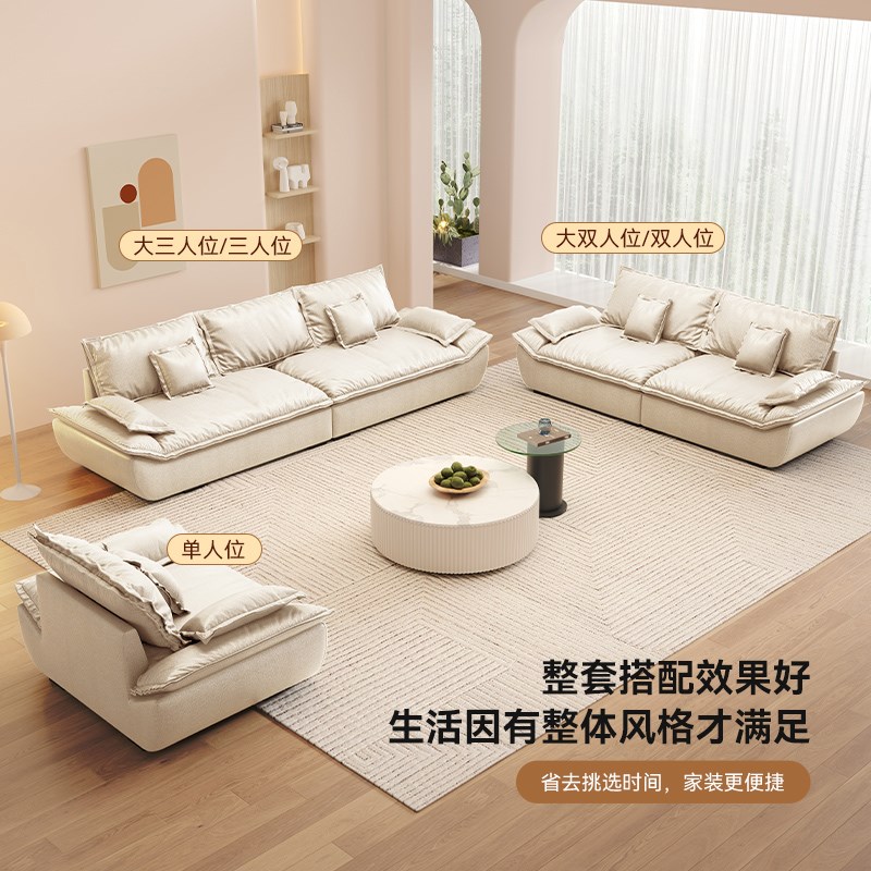意式极简布艺沙发客厅2024新款小户型简约奶油风三人直排帆船沙发