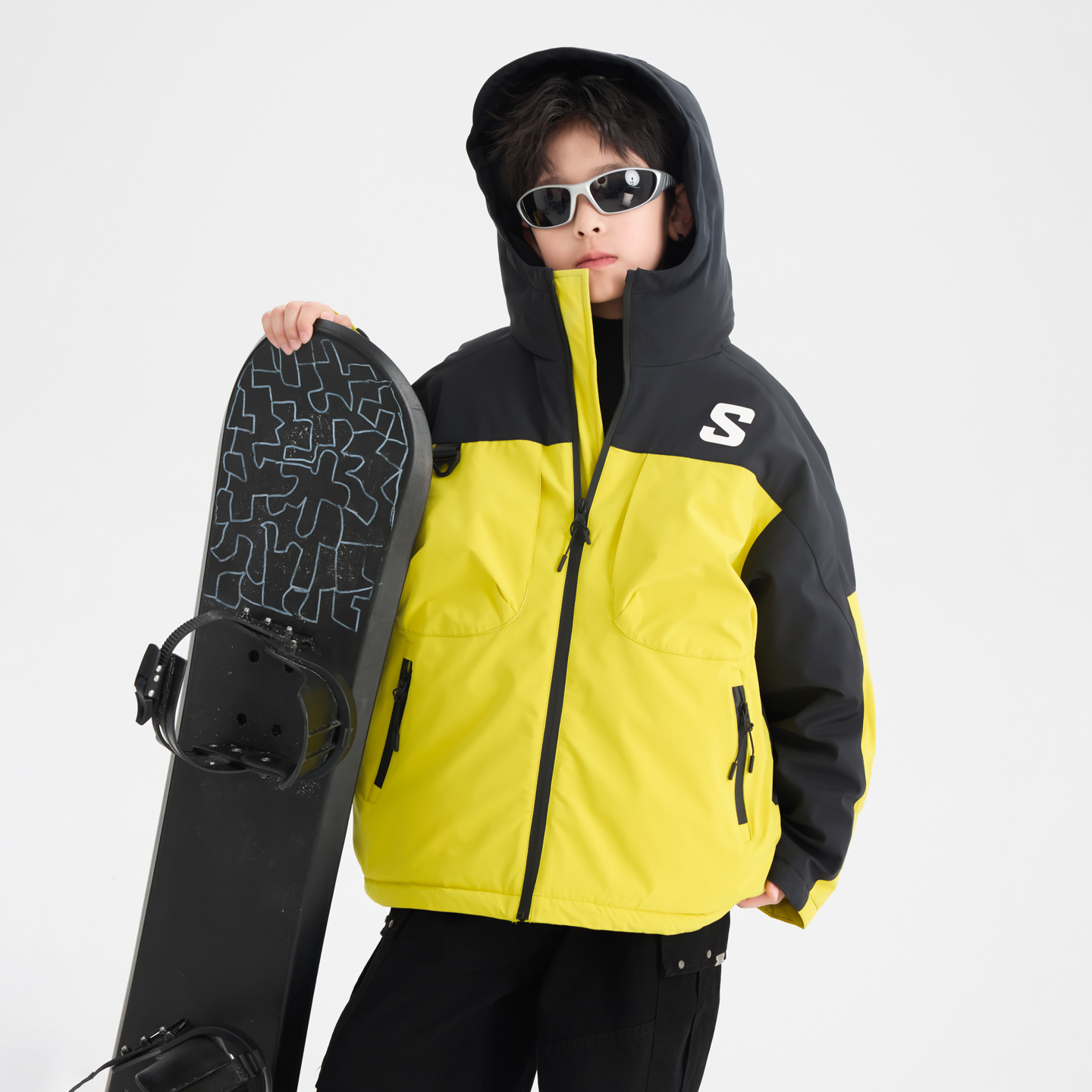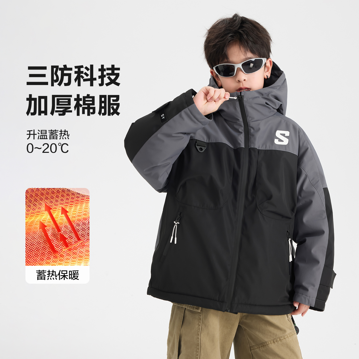 男童冬季户外运动冲锋衣棉服2025新款青少年儿童撞色防水加厚外套