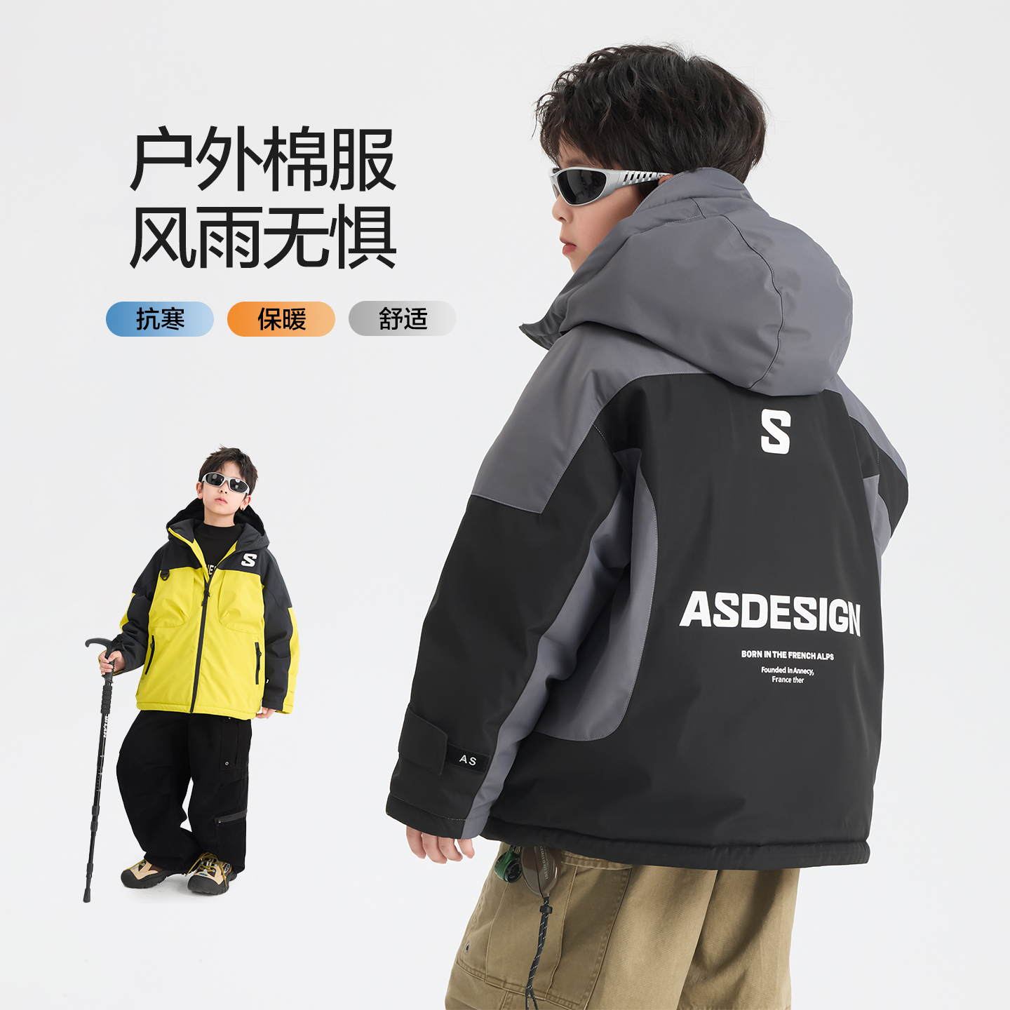 户外撞色运动加厚防水冲锋衣棉服