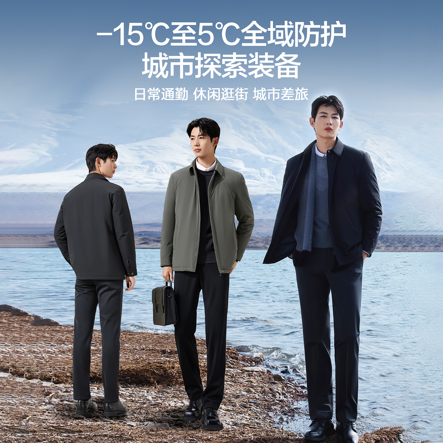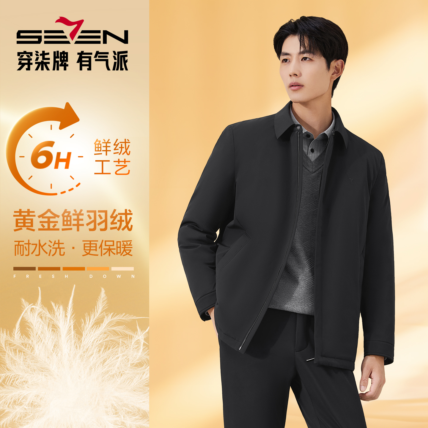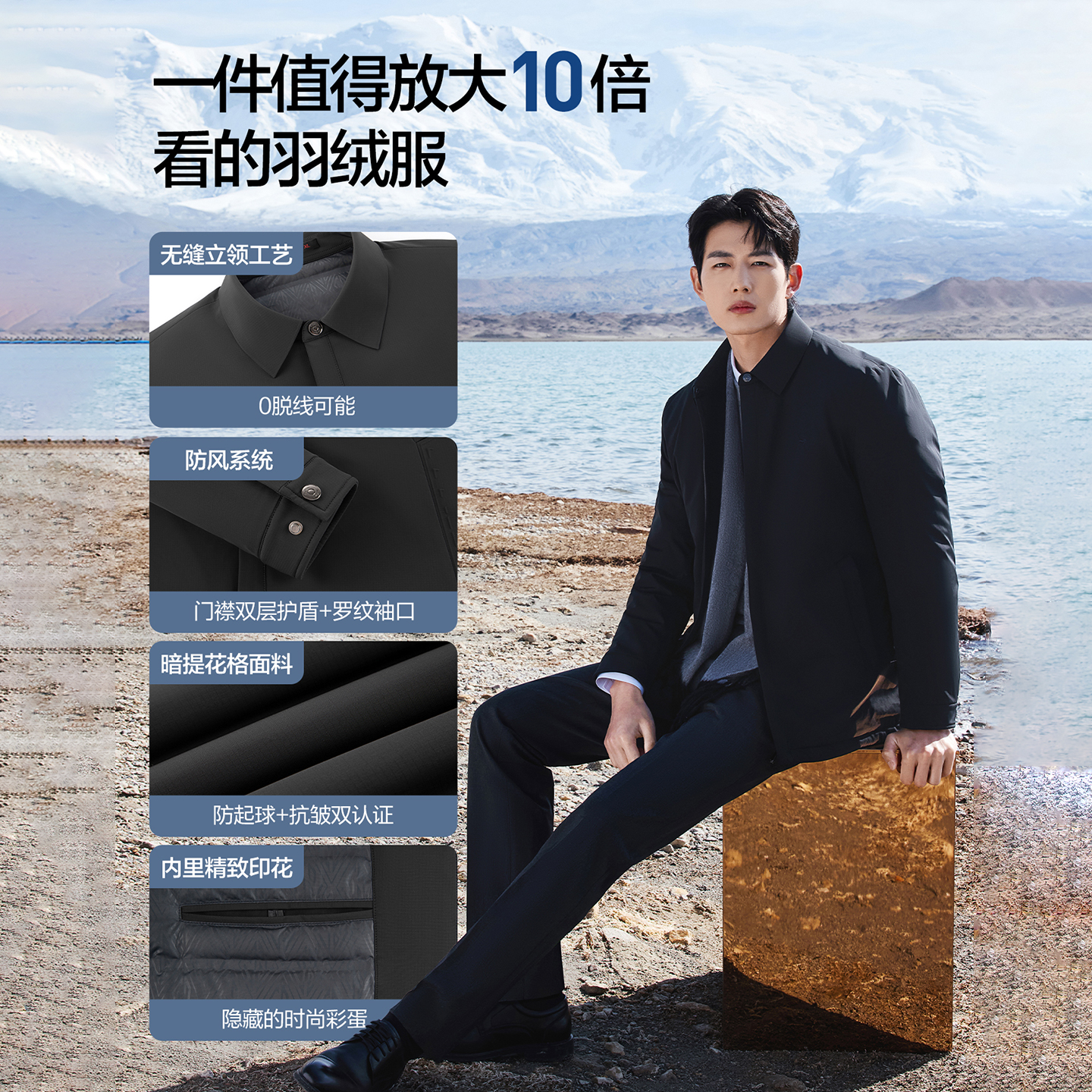【黄金鲜绒】柒牌翻领羽绒服2025秋冬休闲白鸭绒商务行政夹克外套