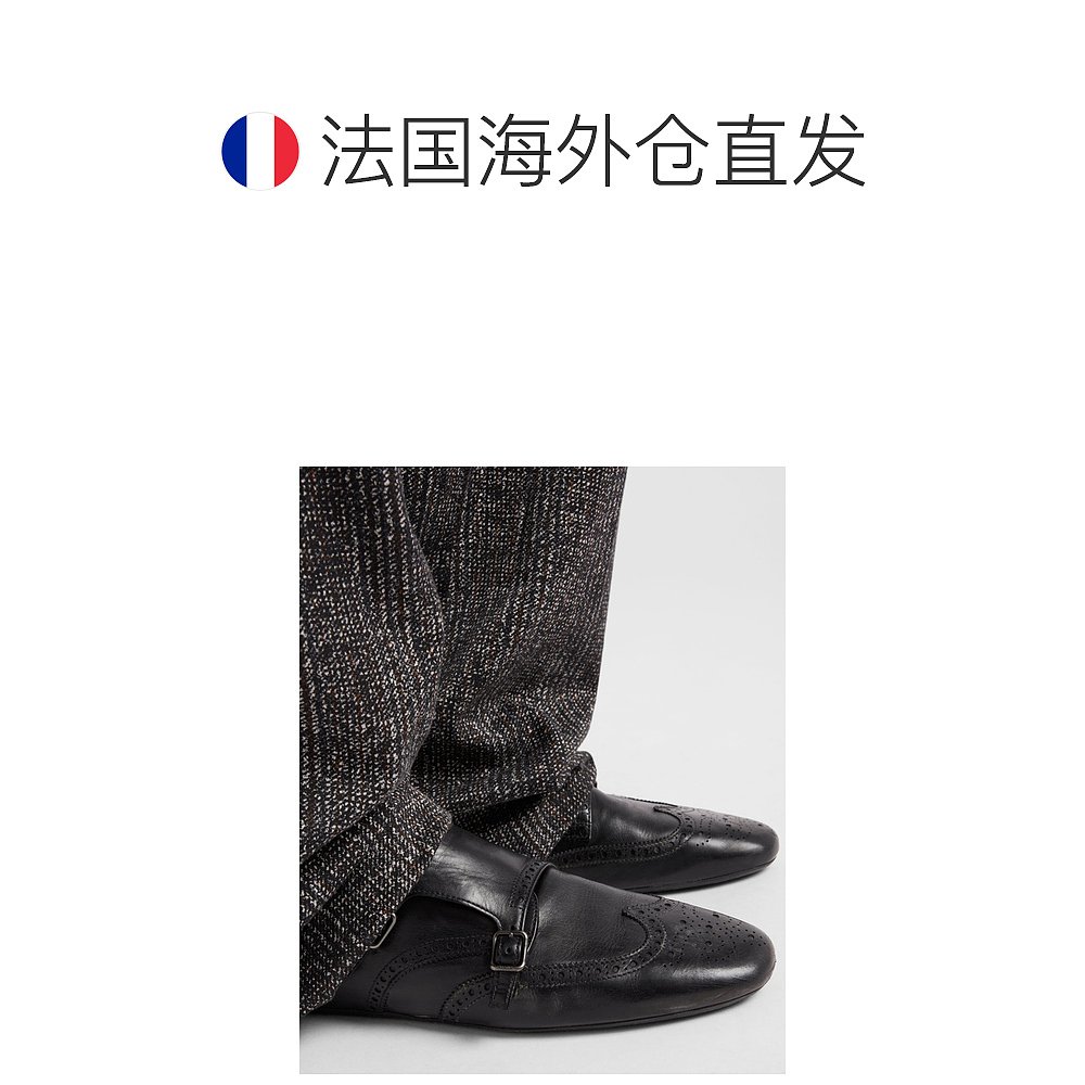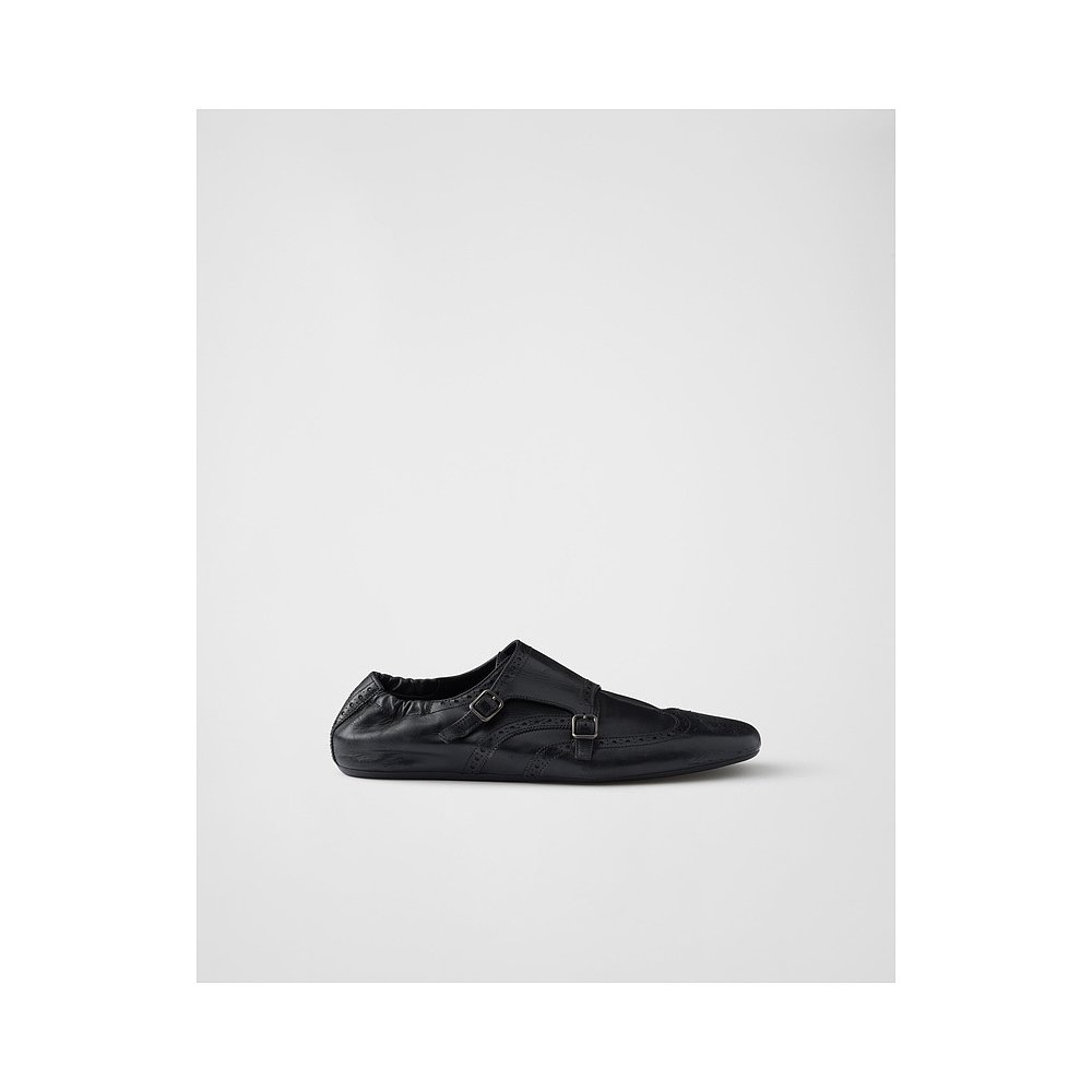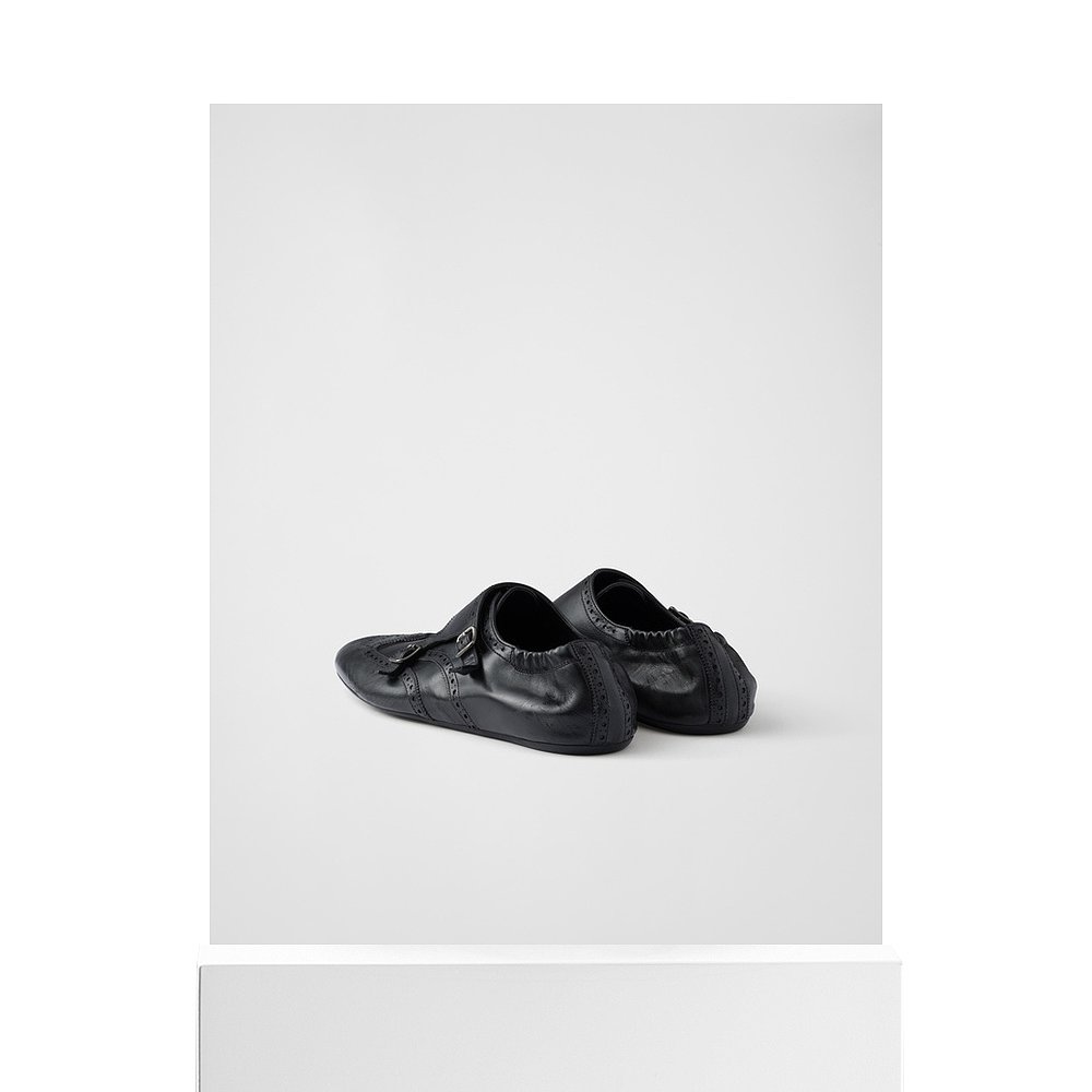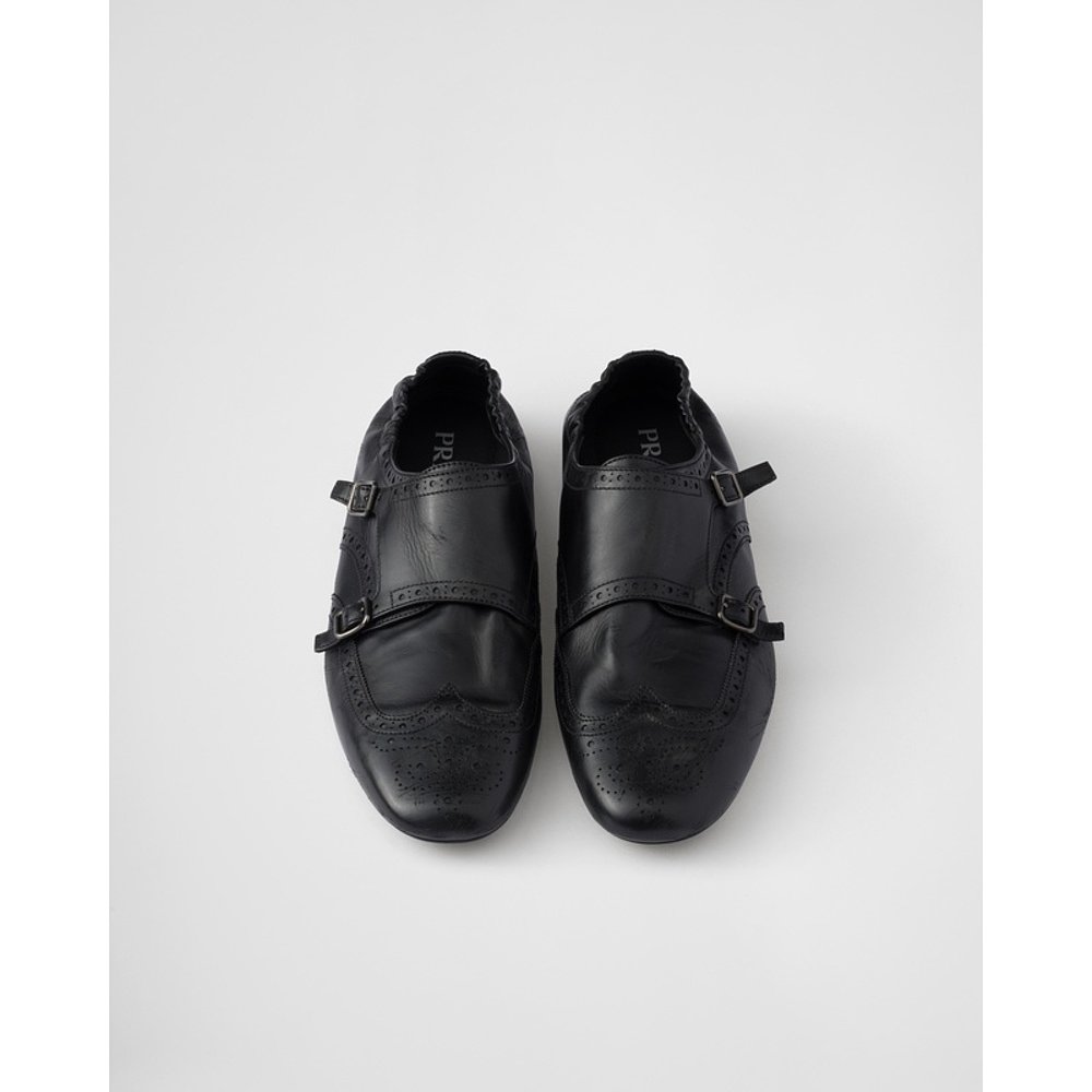 自营欧洲直邮Prada普拉达 Shuffle系列男士黑色牛皮打孔纹路皮鞋