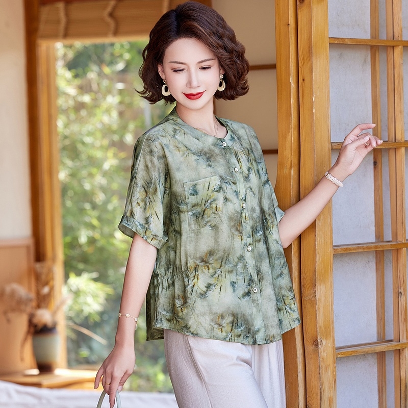 妈妈夏季套装2025新款短袖衬衫中老年人女装高端大码棉麻亚麻上衣