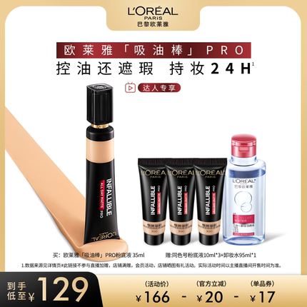 【达人专享】欧莱雅吸油棒PRO粉底液遮瑕控油不脱妆哑光O