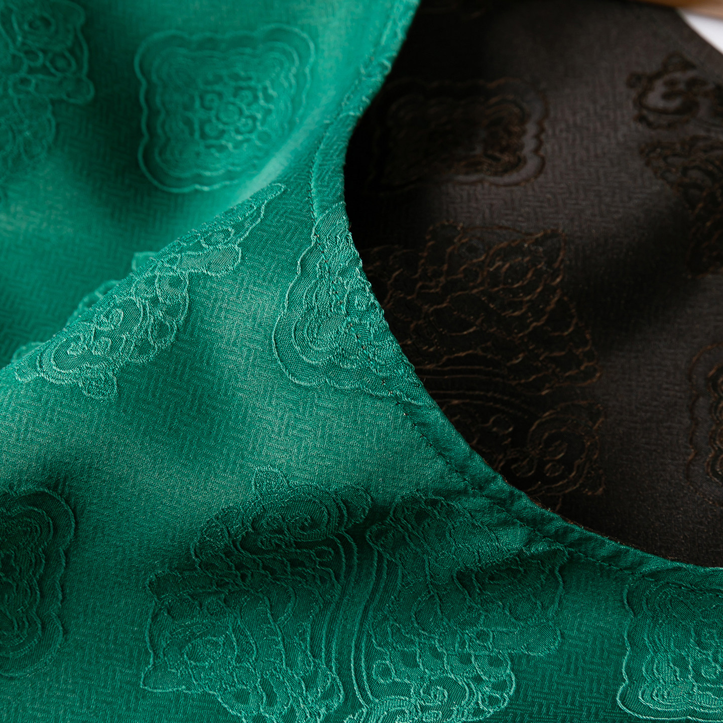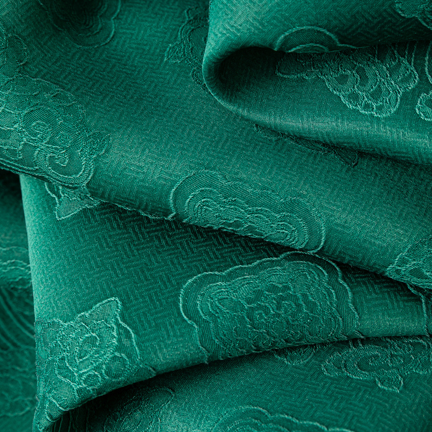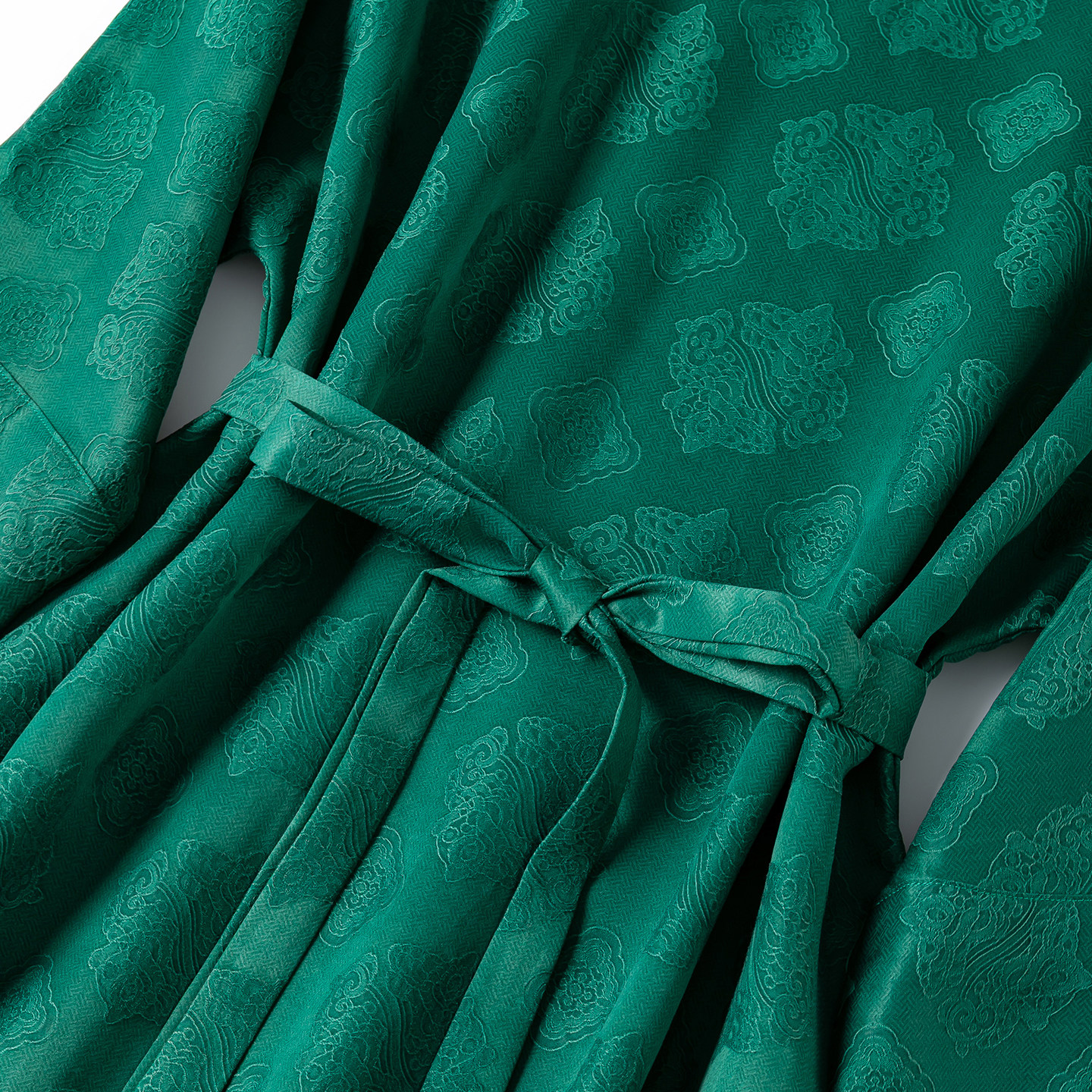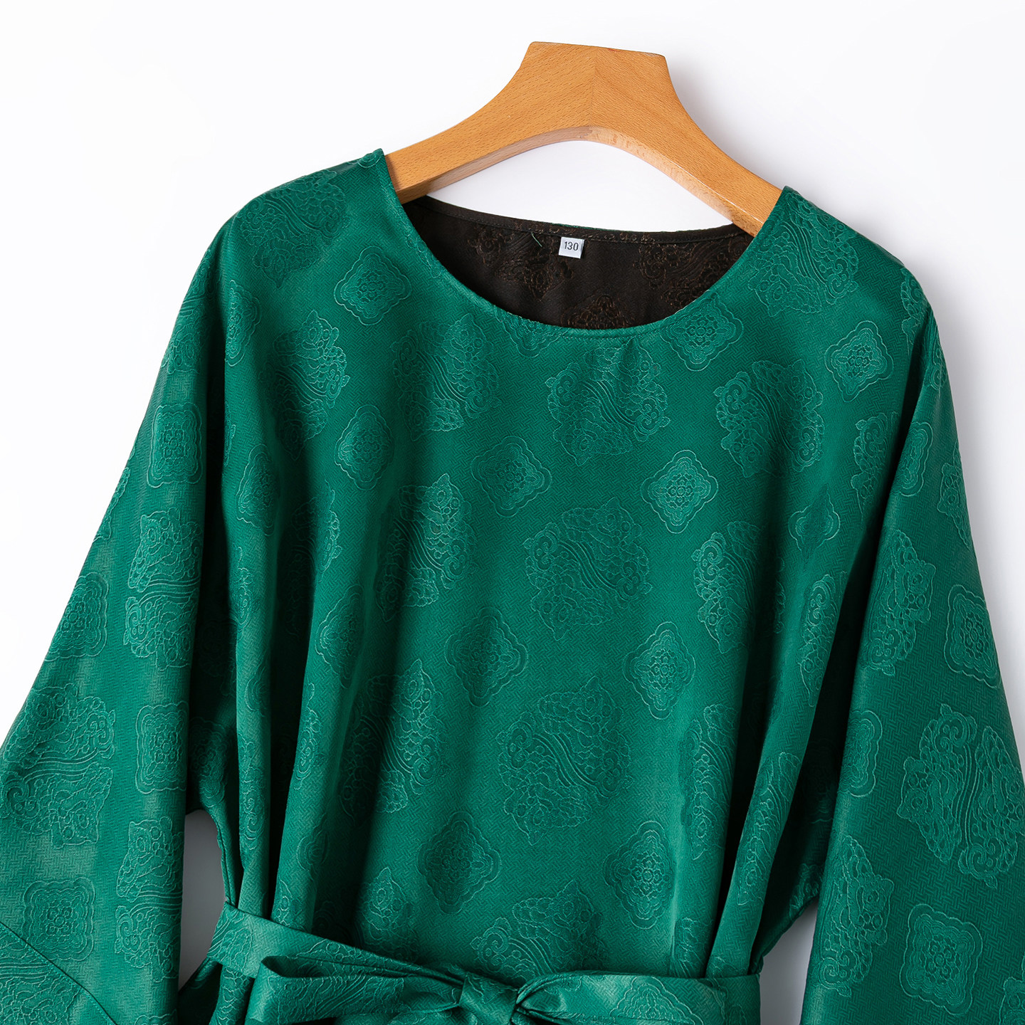 草色绿色45姆米过泥香云纱!重磅缎面提花连袖袍子连衣裙真丝长裙