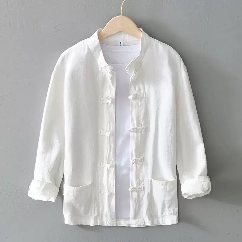 中国风男士亚麻立领盘扣衬衫外套麻布男装禅修茶服太极服汉服衬衣